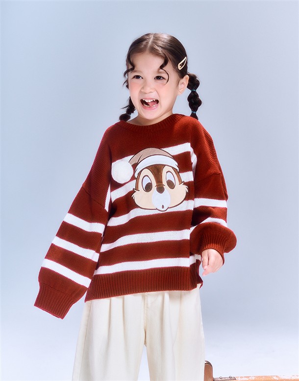 奇奇大臉貼布條紋毛衣‧親子款(童)