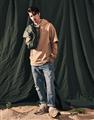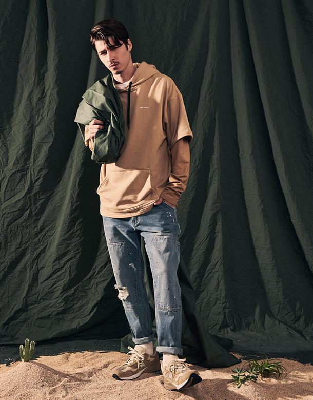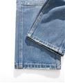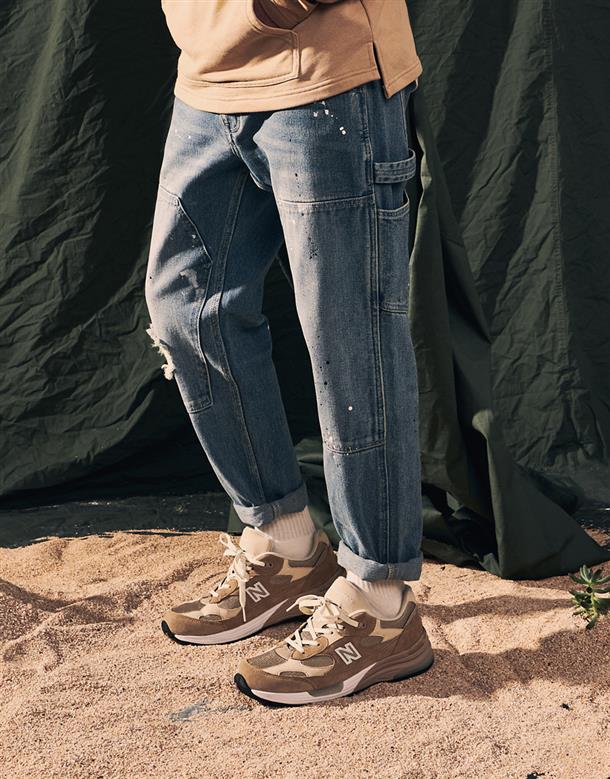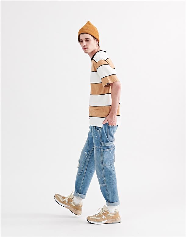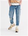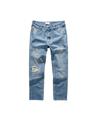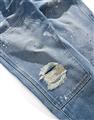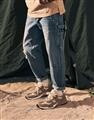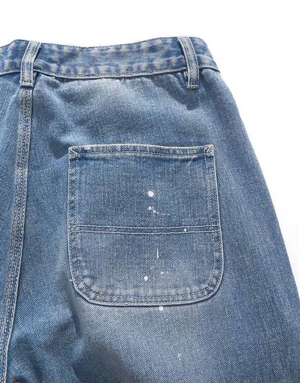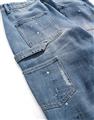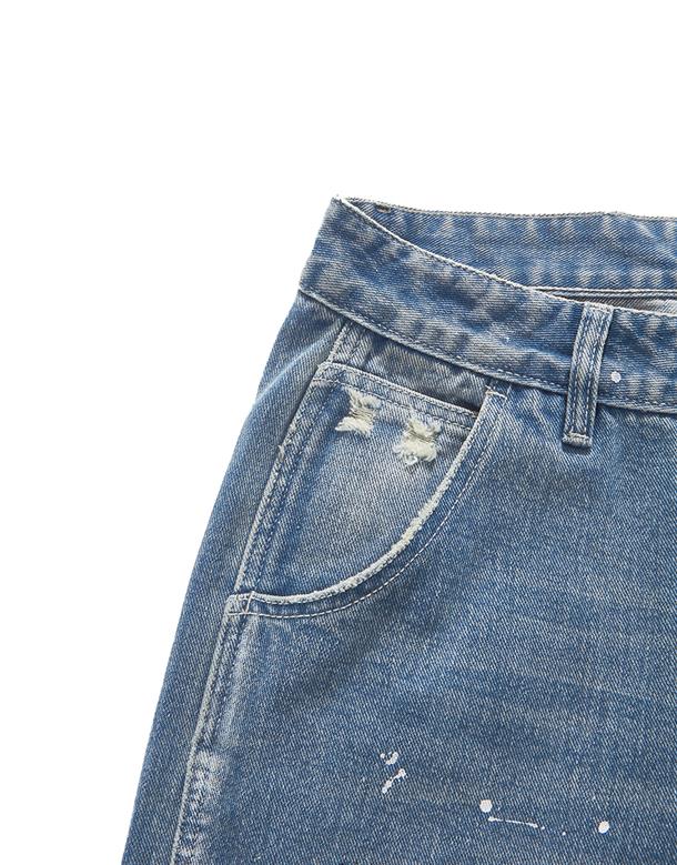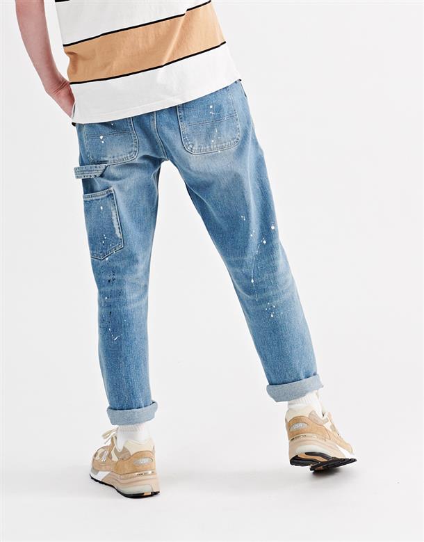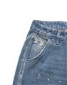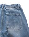 外貼剪接造型破壞潑漆設計,闊腿牛仔刷色褲。