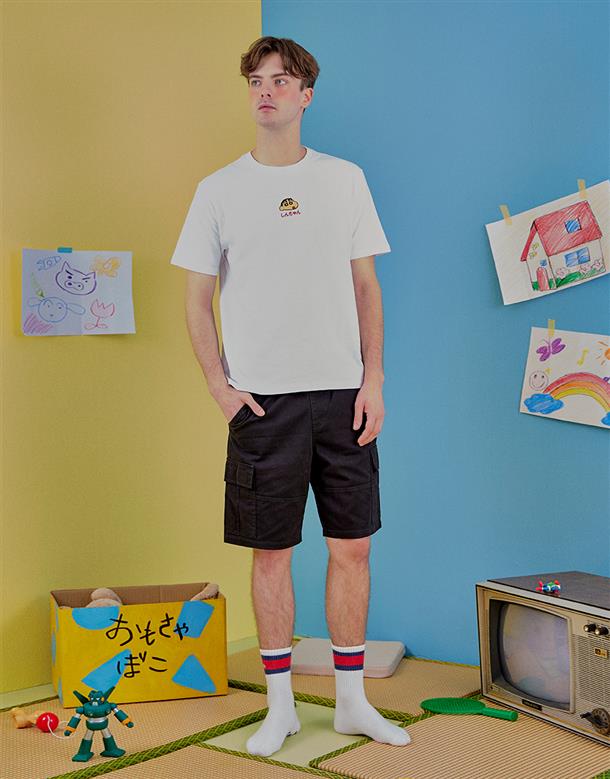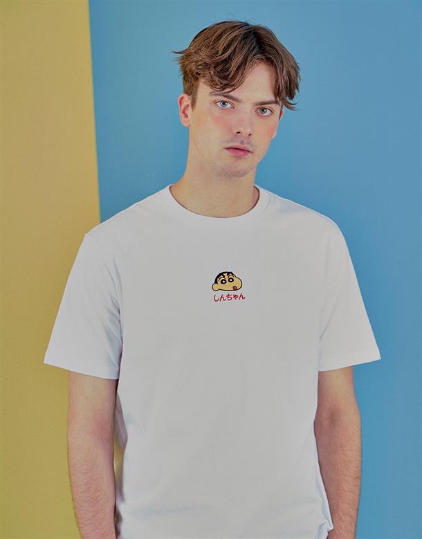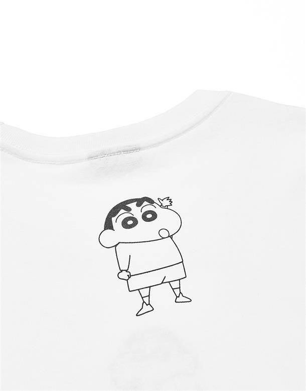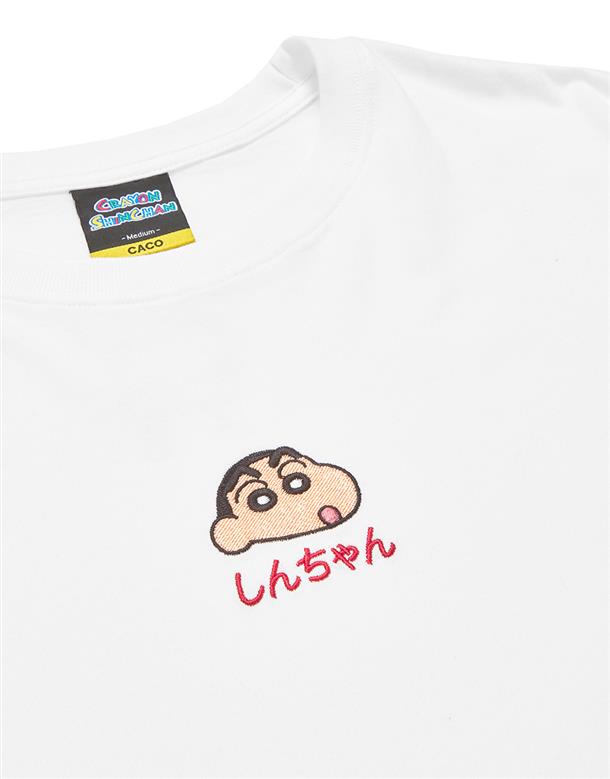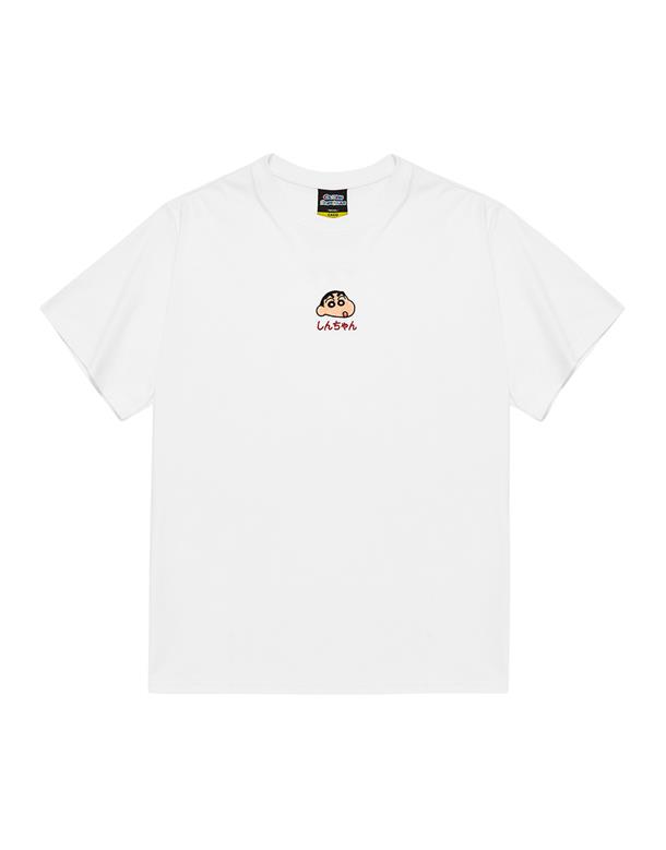 蠟筆小新質感電繡短T,後背印花,舒適棉質面料。
