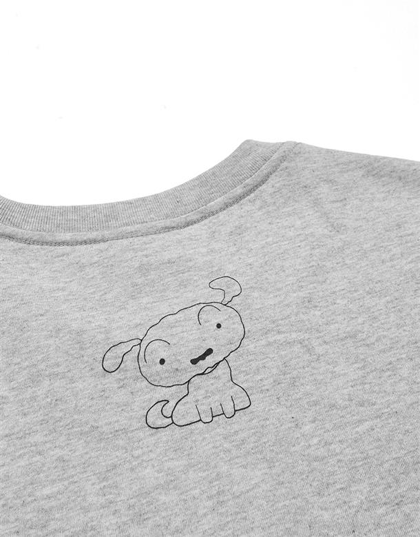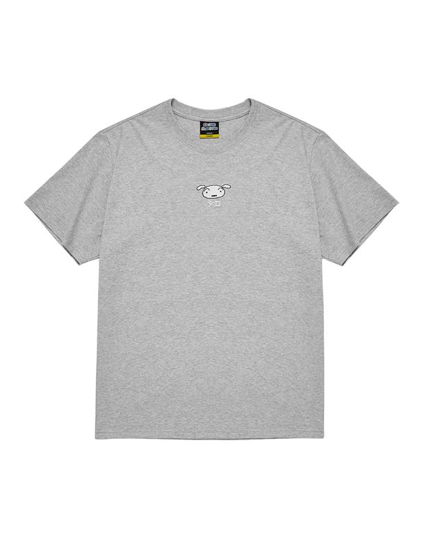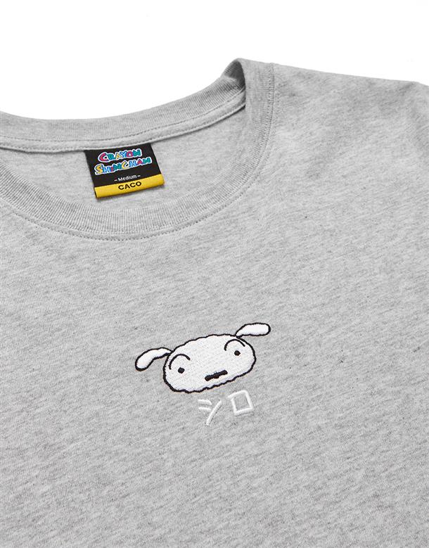 小白質感電繡短T,後背印花,舒適棉質面料。