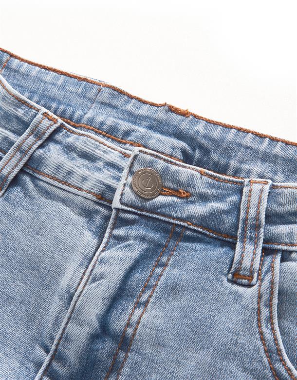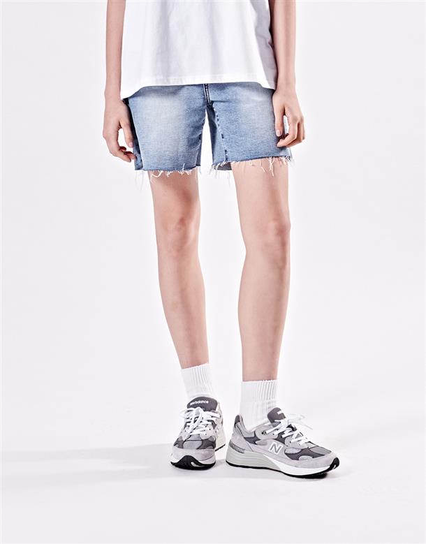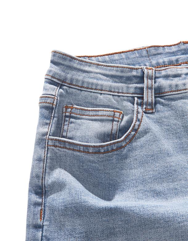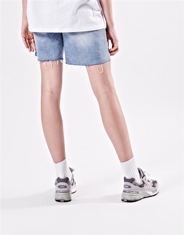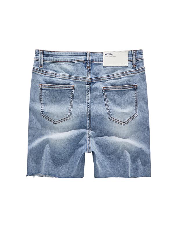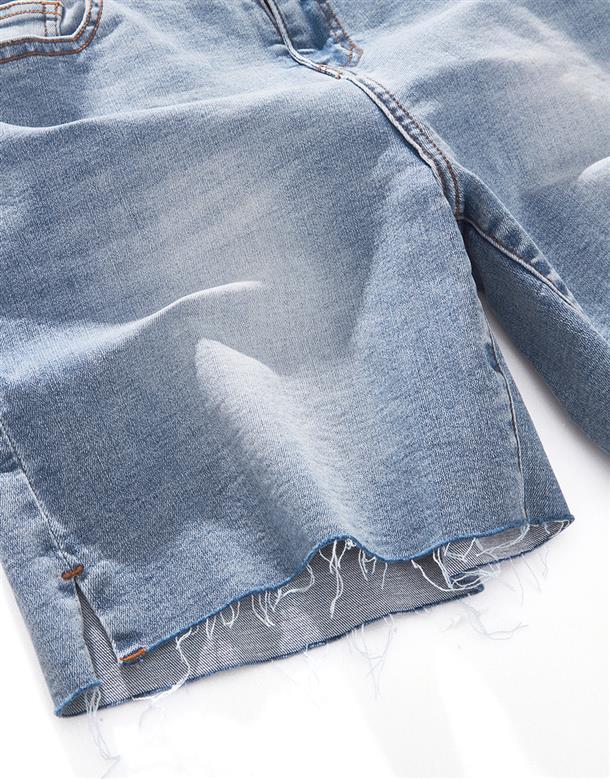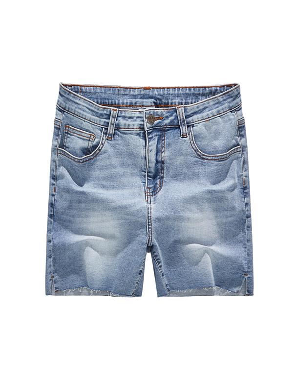 夏季必備重洗水不收邊,彈性刷色牛仔短褲。