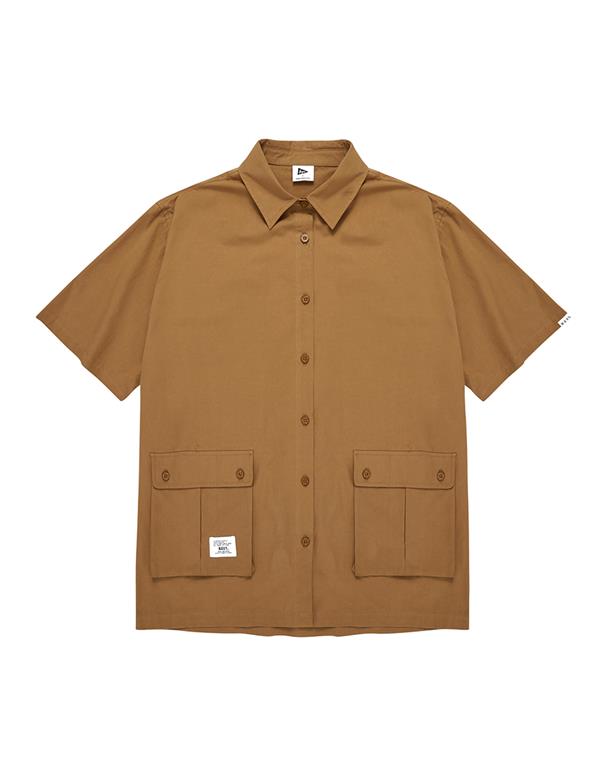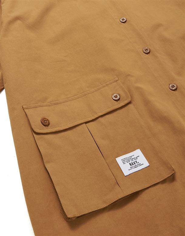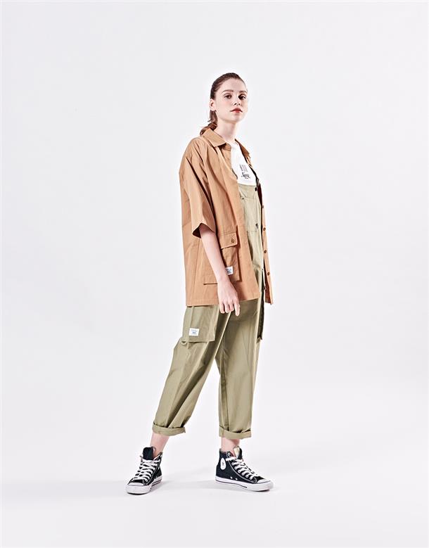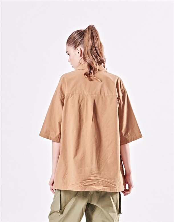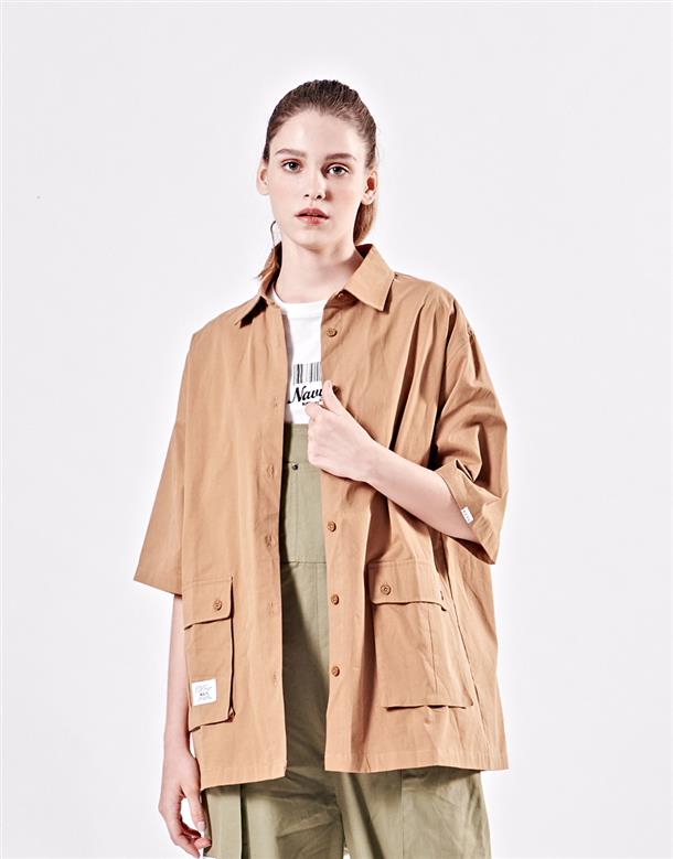 寬鬆版擴型襯衫,五分袖設計,立體口袋貼袋造型。