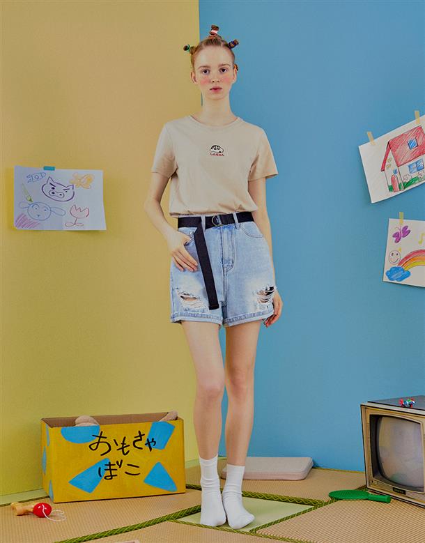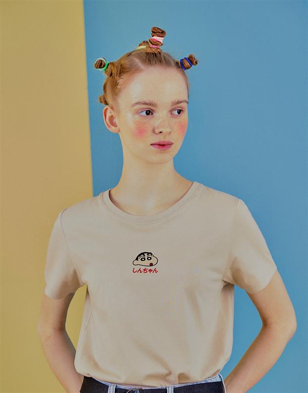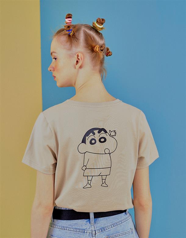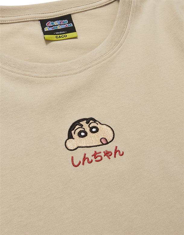 蠟筆小新質感電繡上衣,背圖大印花,舒適棉質面料。