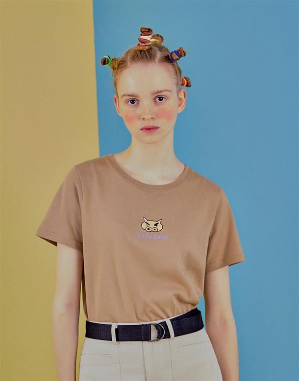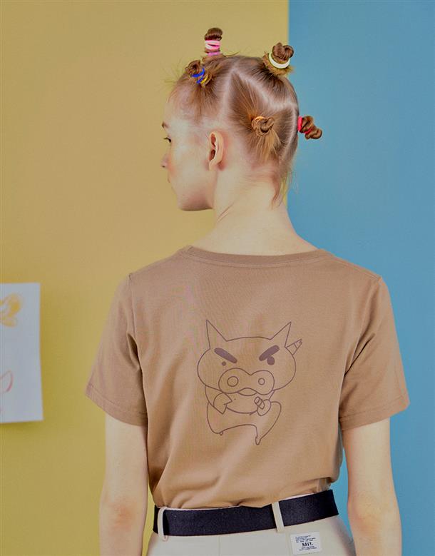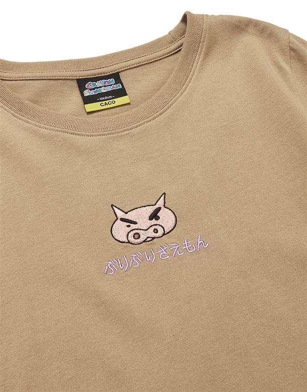 肥嘟嘟左衛門質感電繡上衣,背圖大印花,舒適棉質面料。