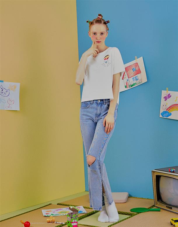 動感超人內褲造型,趣味口袋上衣,質感電繡印花設計,舒適麻棉洗水面料。