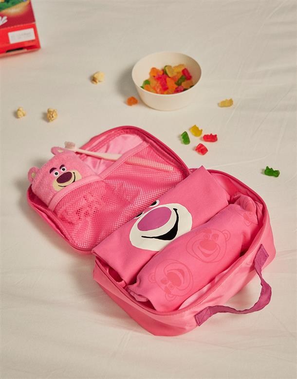 熊抱哥大臉萬用收納袋,提把撞色設計,尼龍材質輕巧好收納。