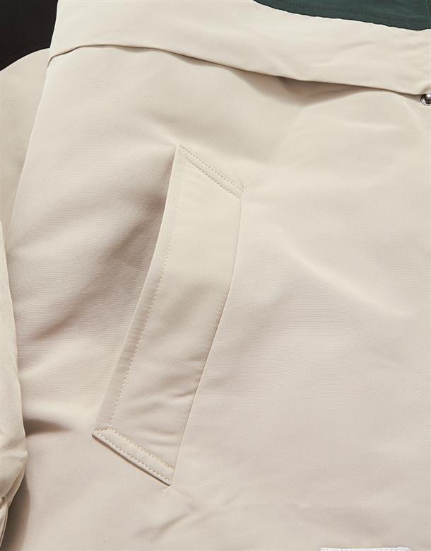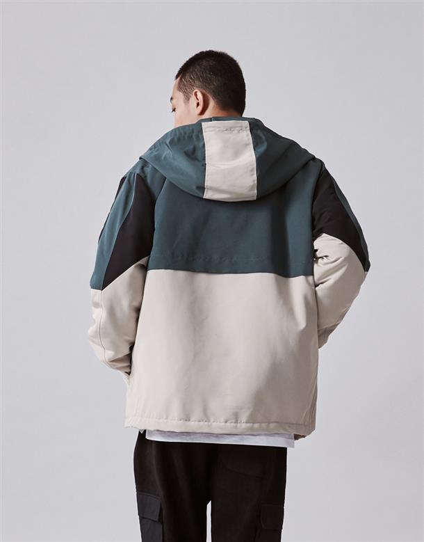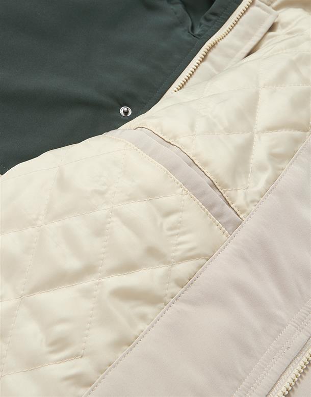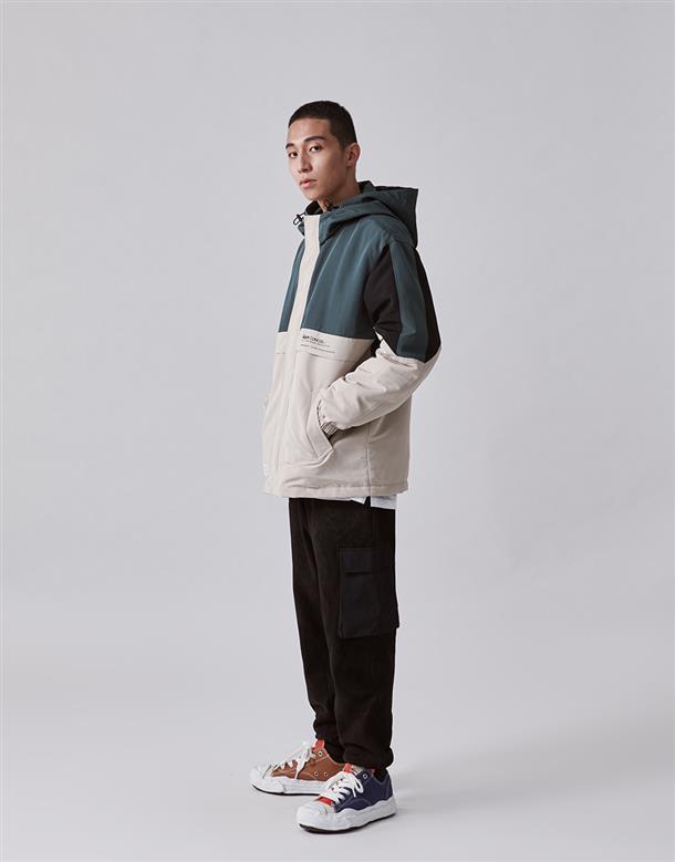 秋冬穿搭必備薄鋪棉款剪接款撞色風衣外套。