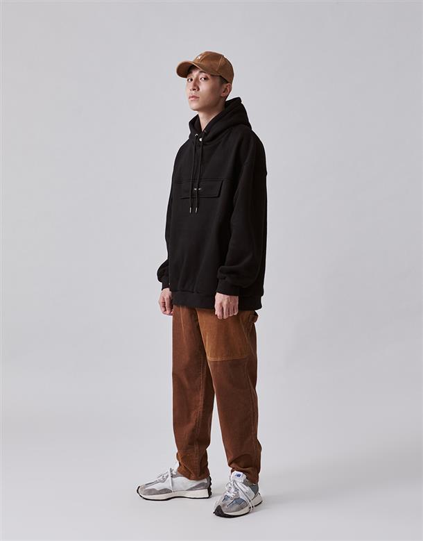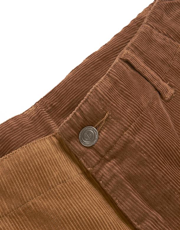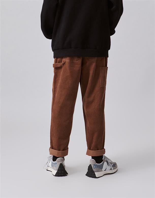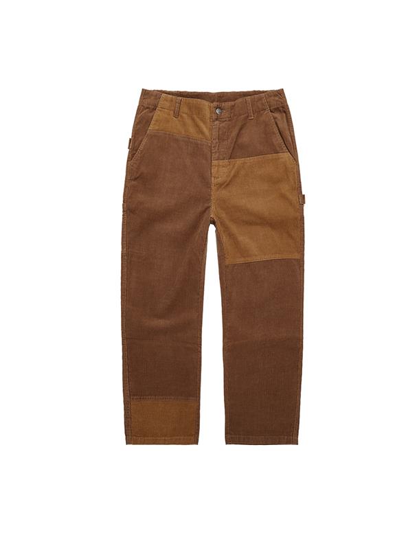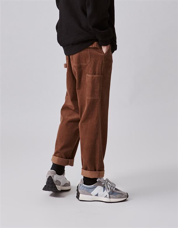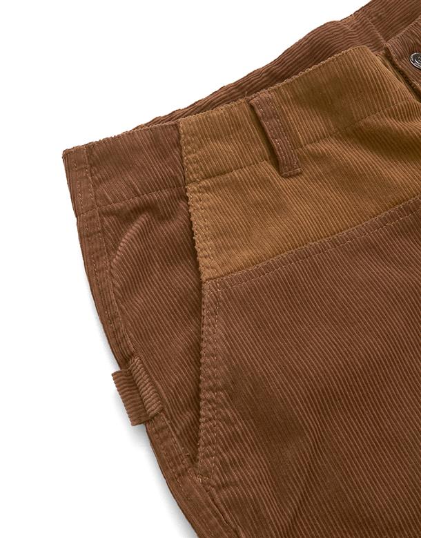秋冬搭配款錐形拼色燈芯絨材質畫家工作褲。