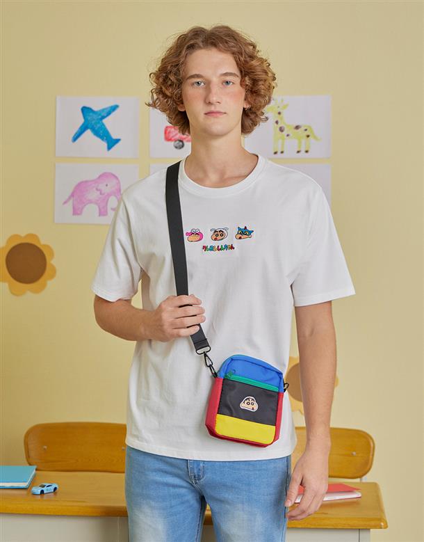 小新戟絨刻字電繡經典撞色小包。