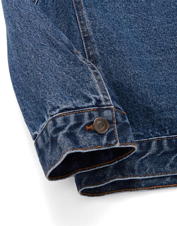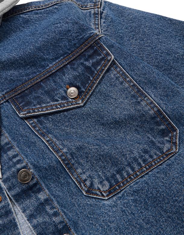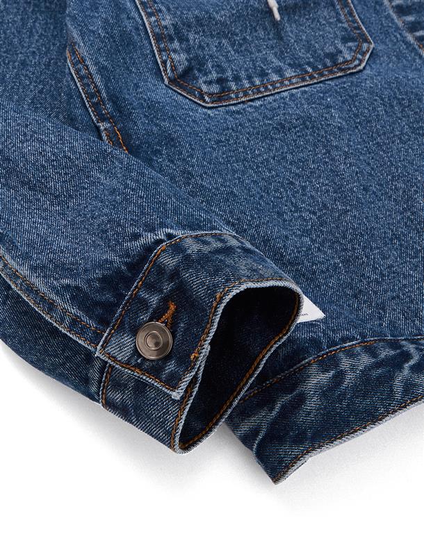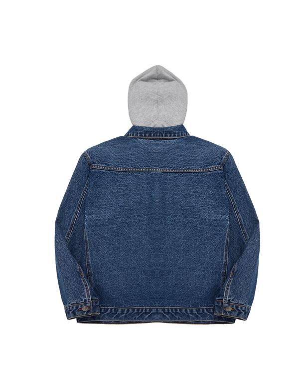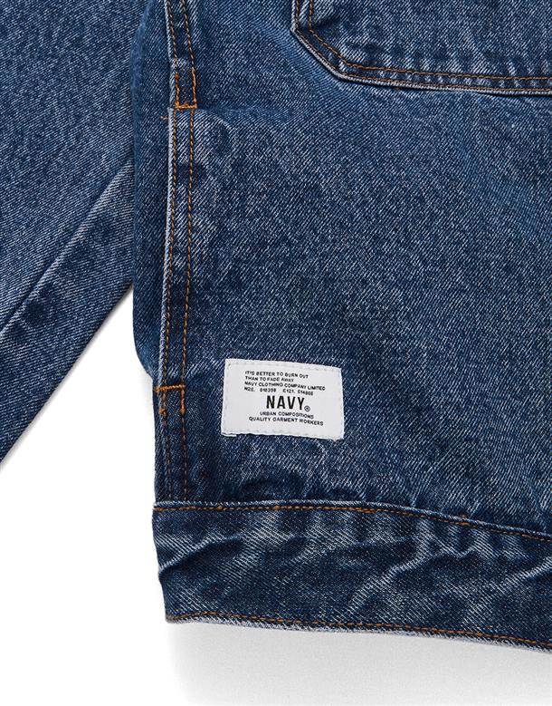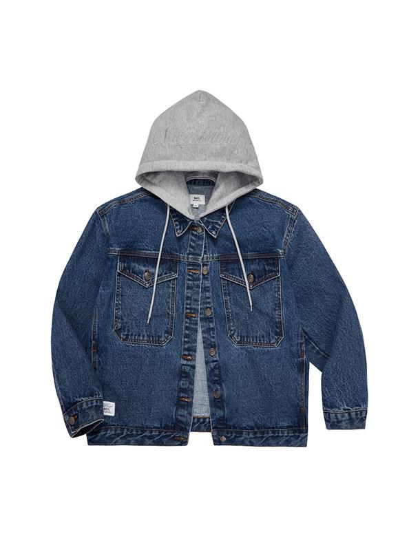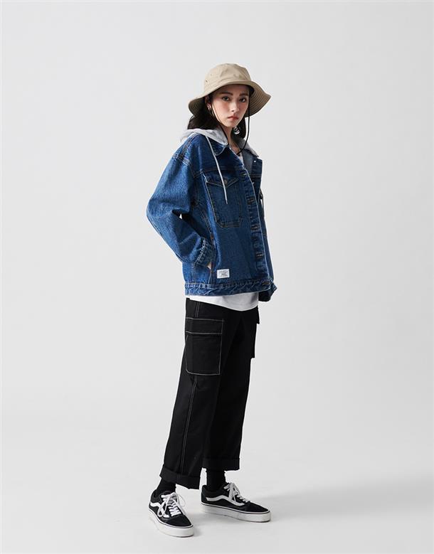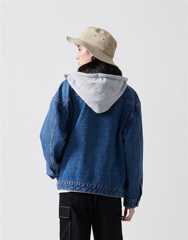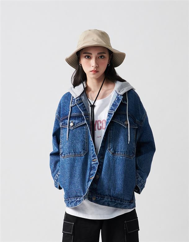 秋冬必備經典百搭洗水可拆帽牛仔落肩短版外套。