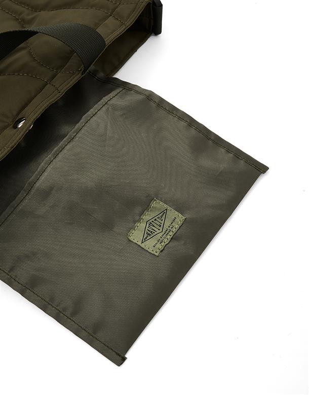 秋冬造型必備衍縫鋪棉側背包。