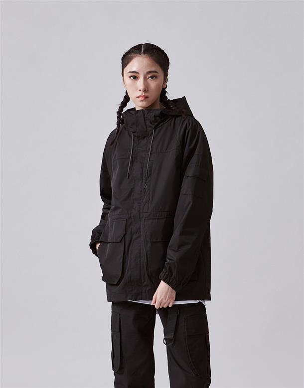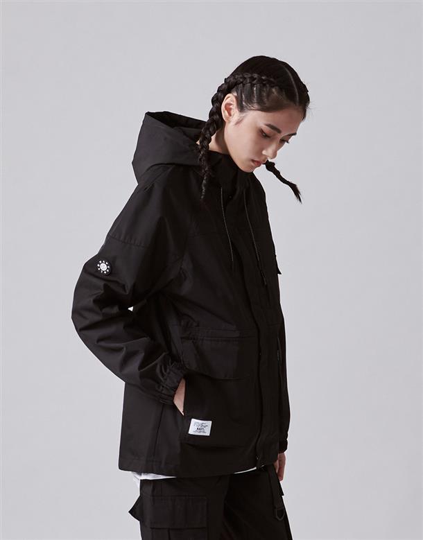 特殊防風防潑水面料,品牌圓形滴膠章衝鋒外套。