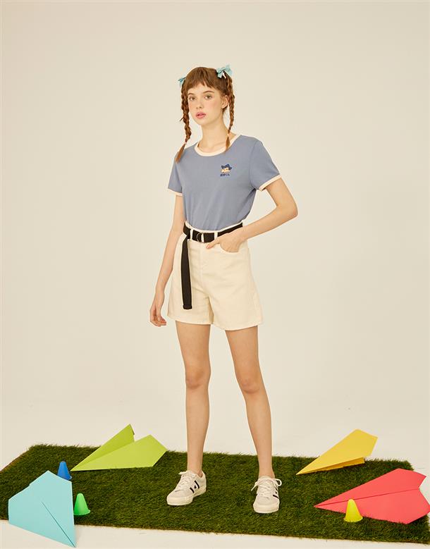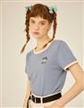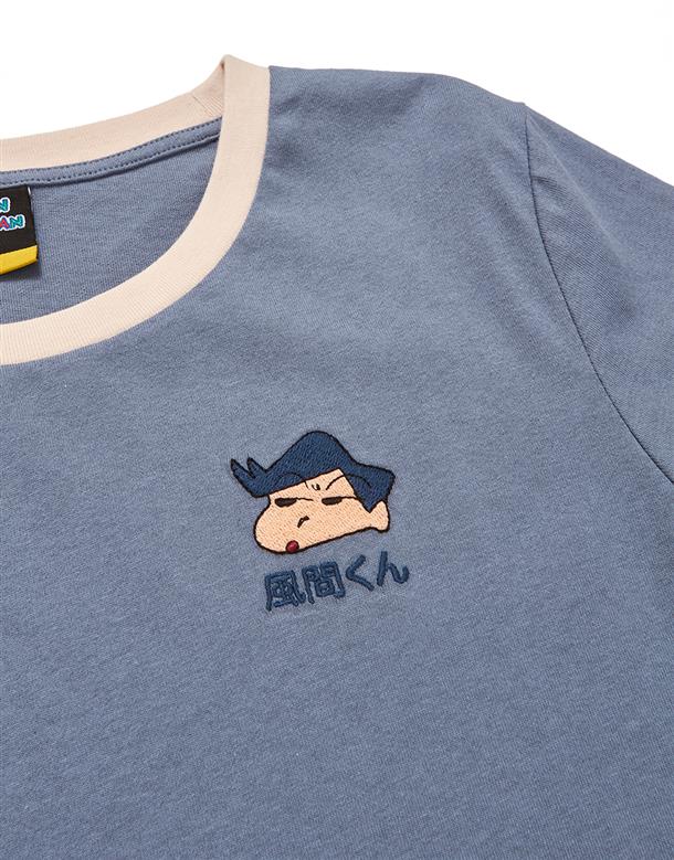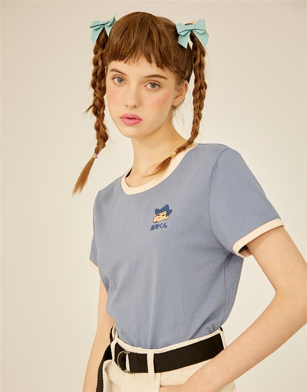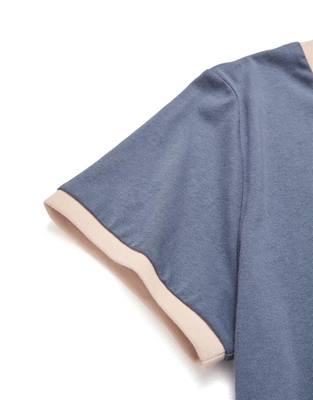 風間撞色上衣,質感電繡,舒適麻棉面料。