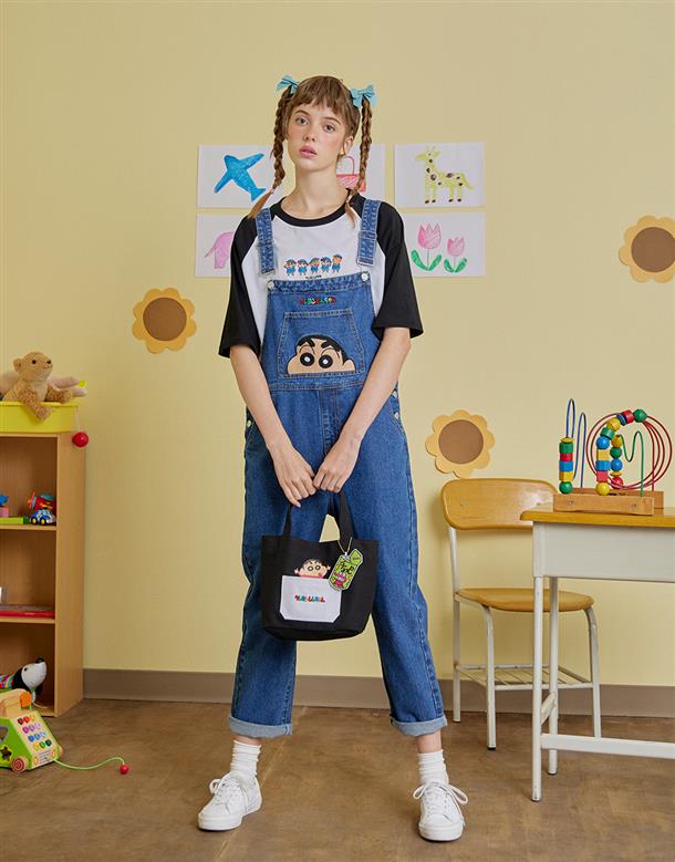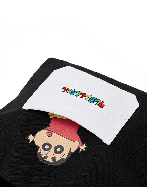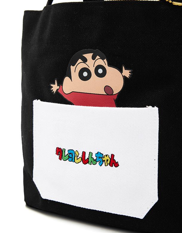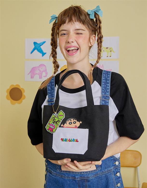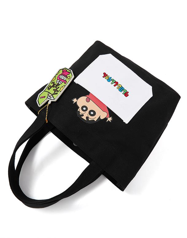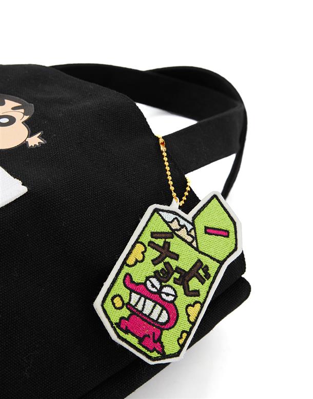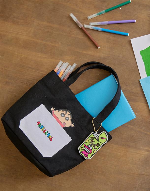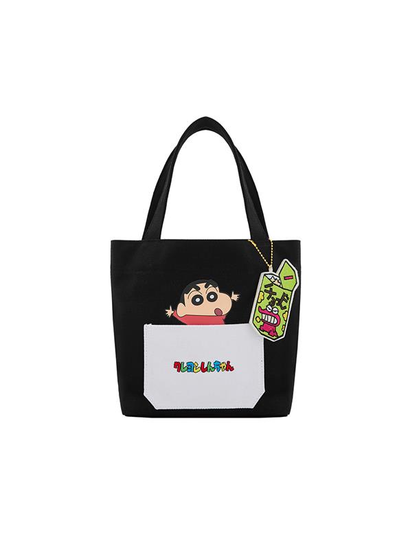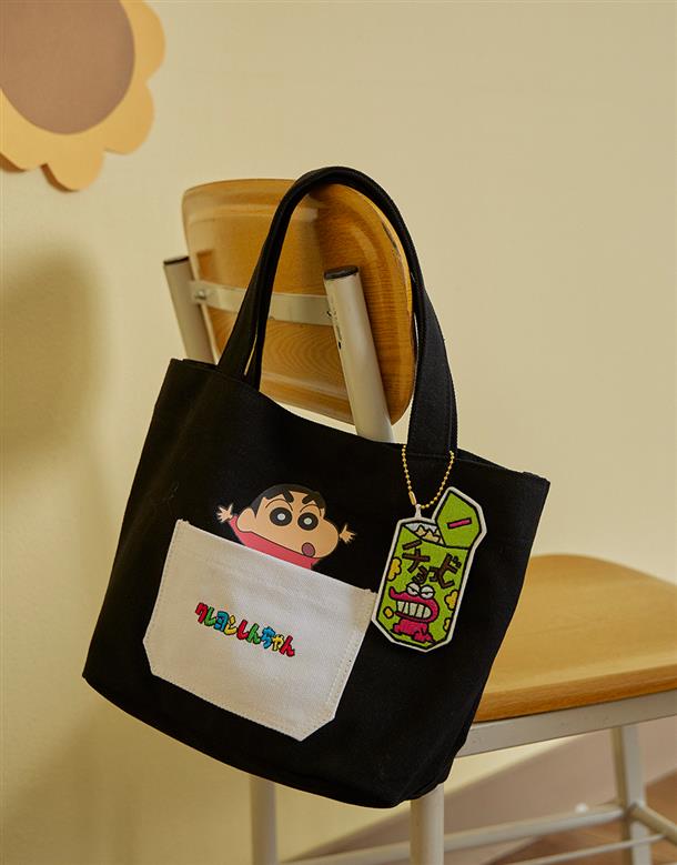 蠟筆小新貼袋設計,巧克筆餅乾造型吊飾,帆布手提袋,輕巧方便攜帶。
