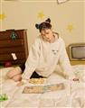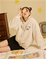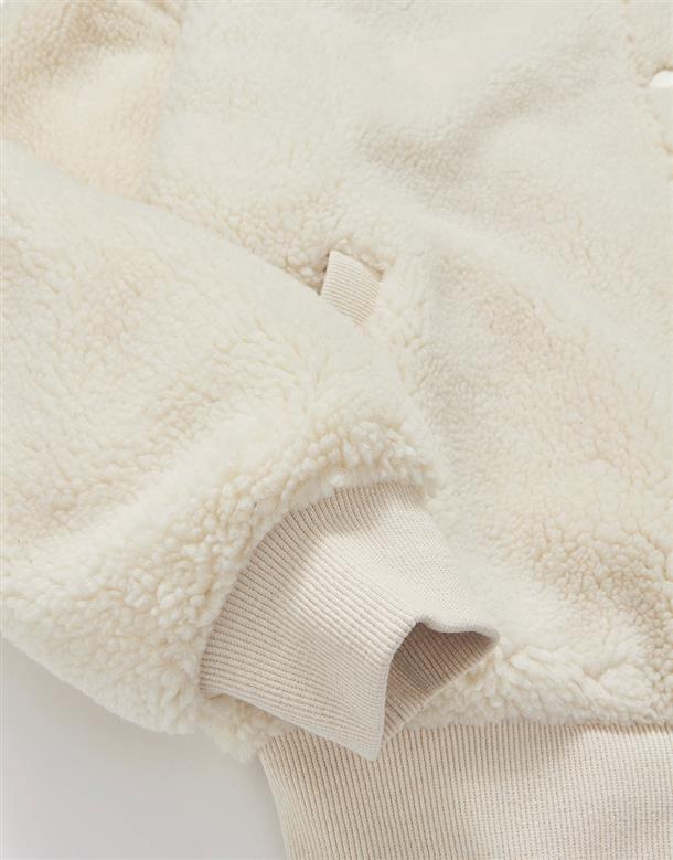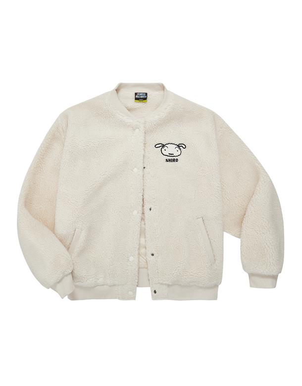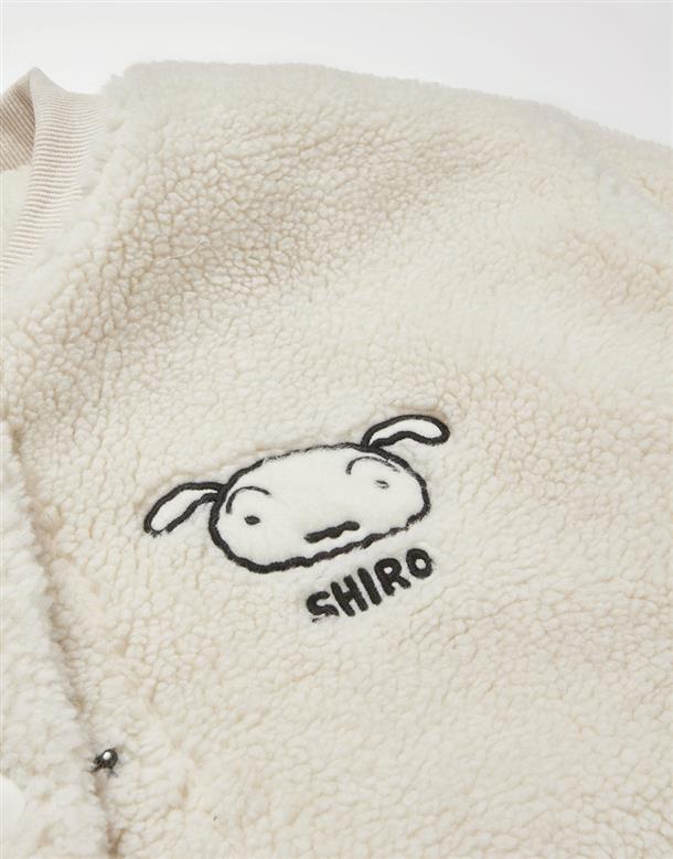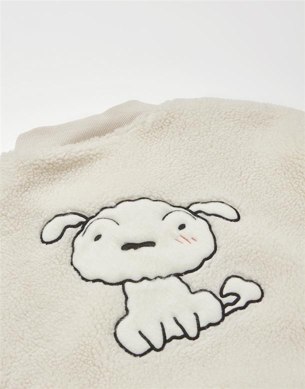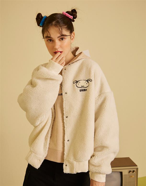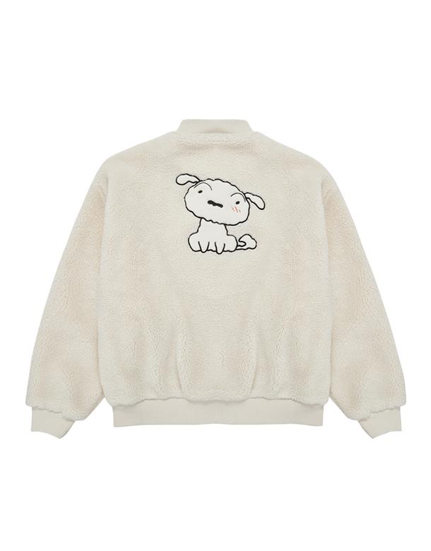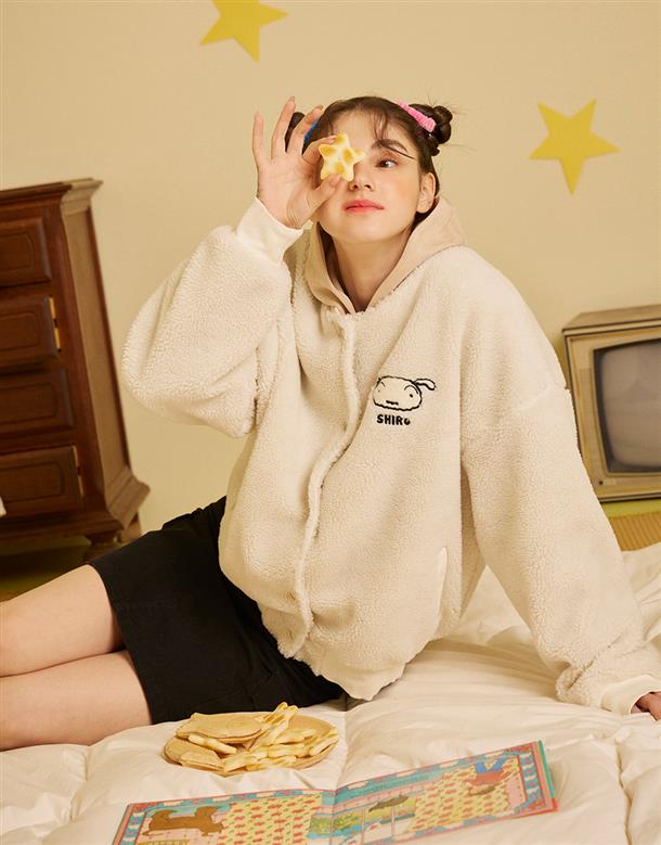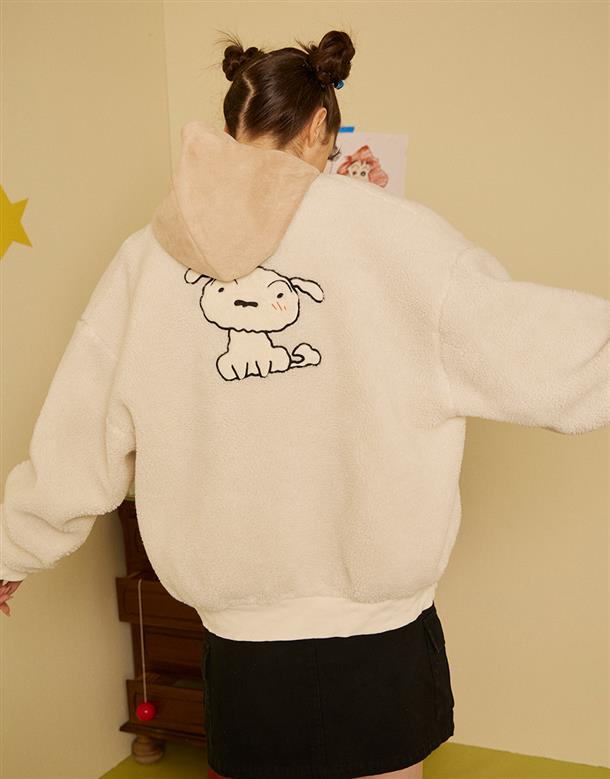 蠟筆小新系列,QQ毛保暖外套,落肩寬鬆版型,小白毛毛貼布繡。