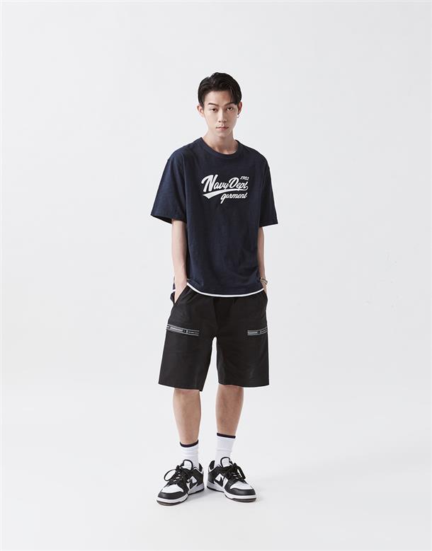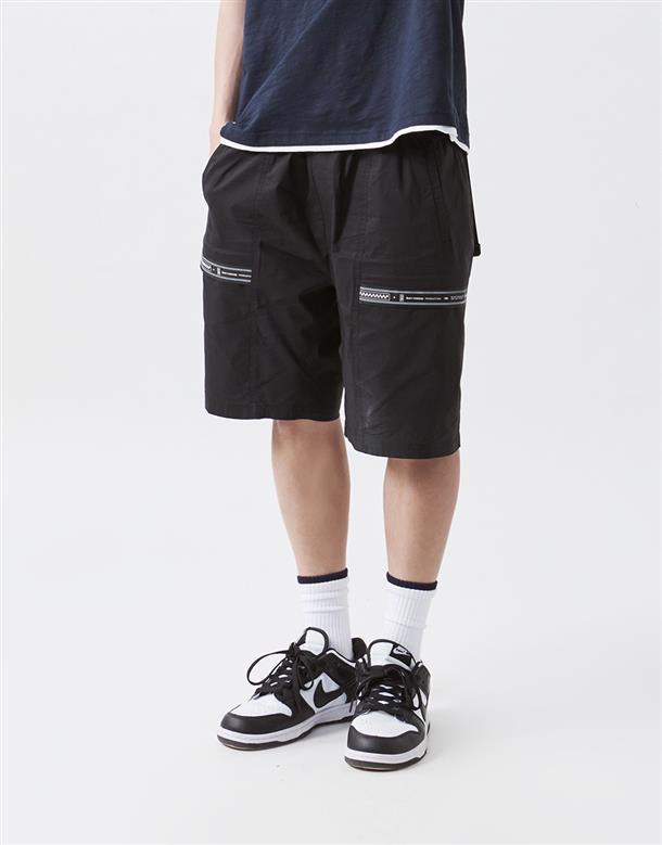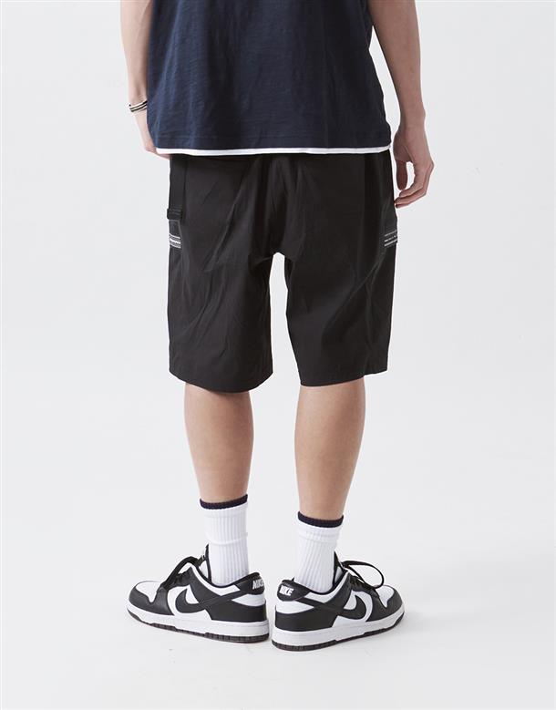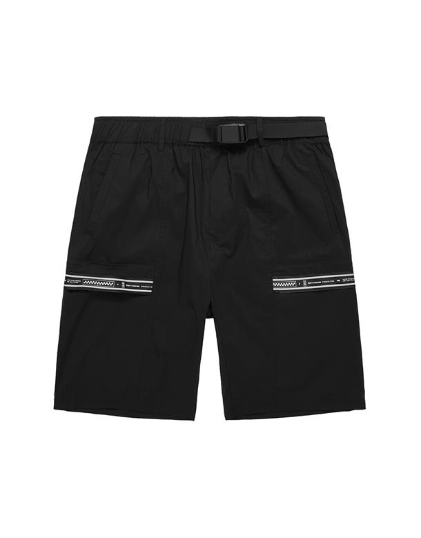 造型設計織帶搭配款速乾材質口袋工作短褲。