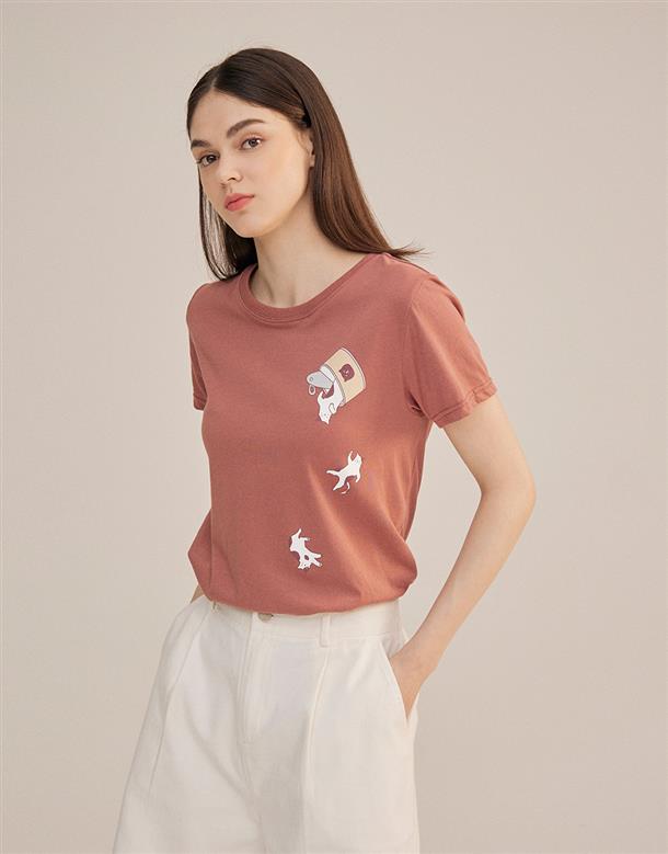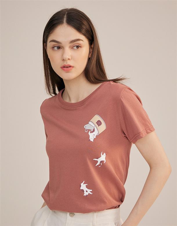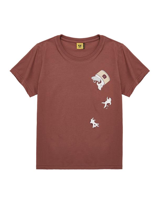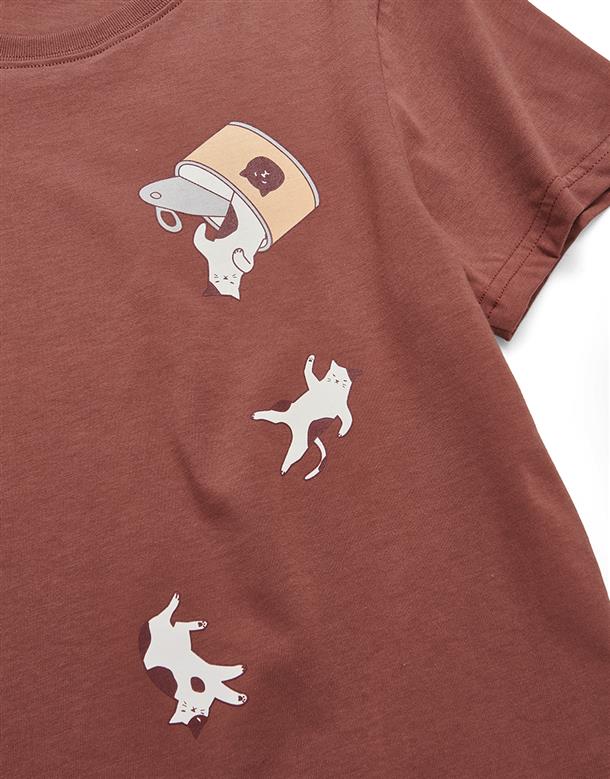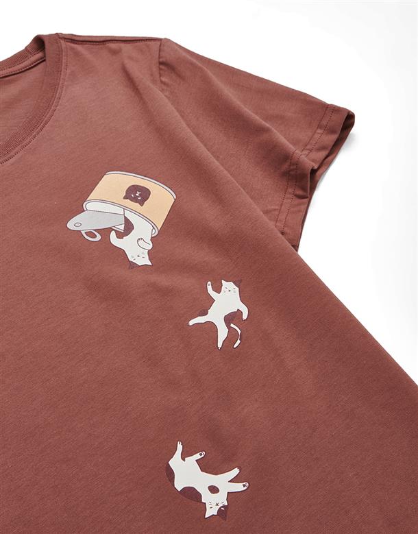 MIT 掉落貓咪罐頭趣味設計短TEE。