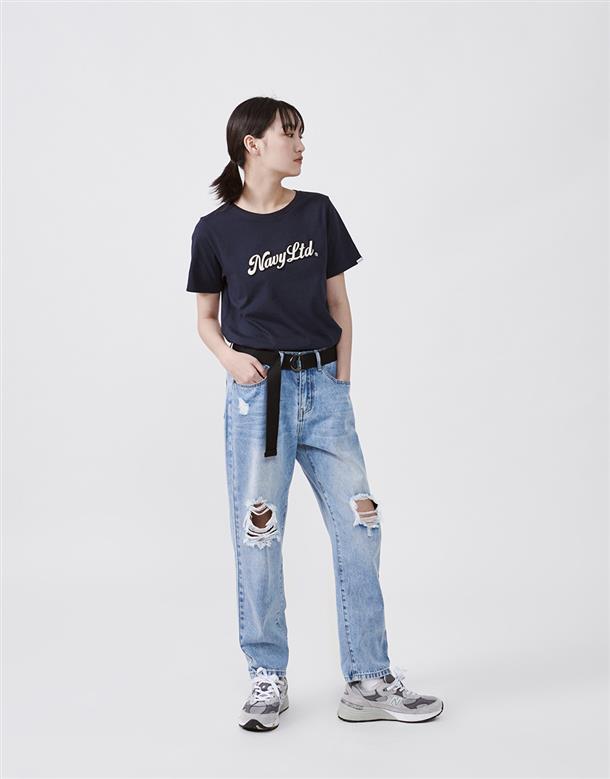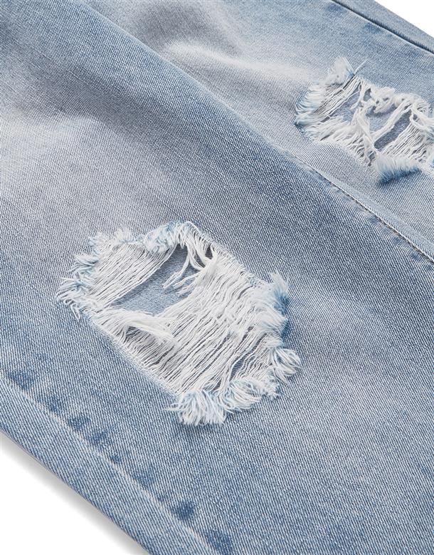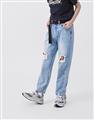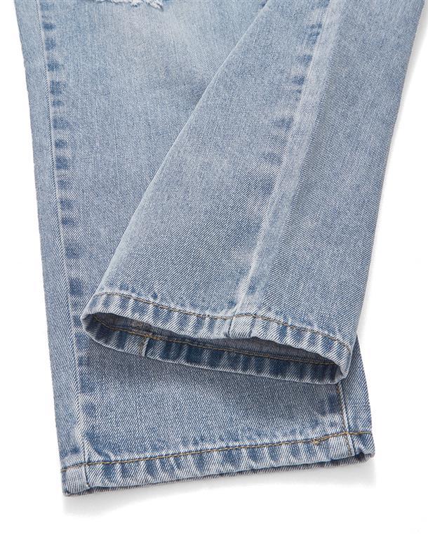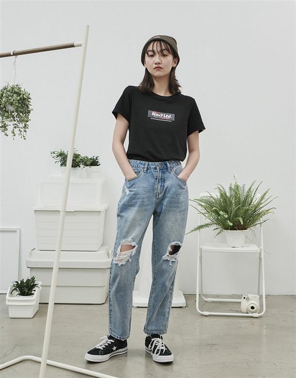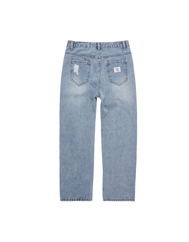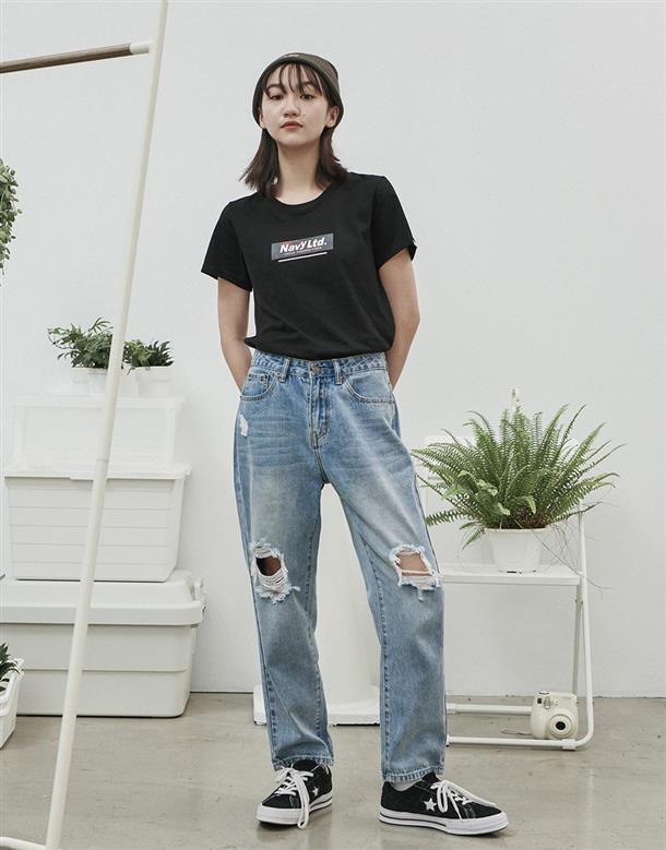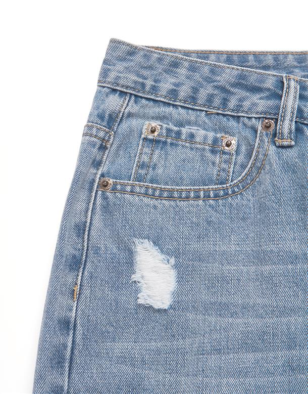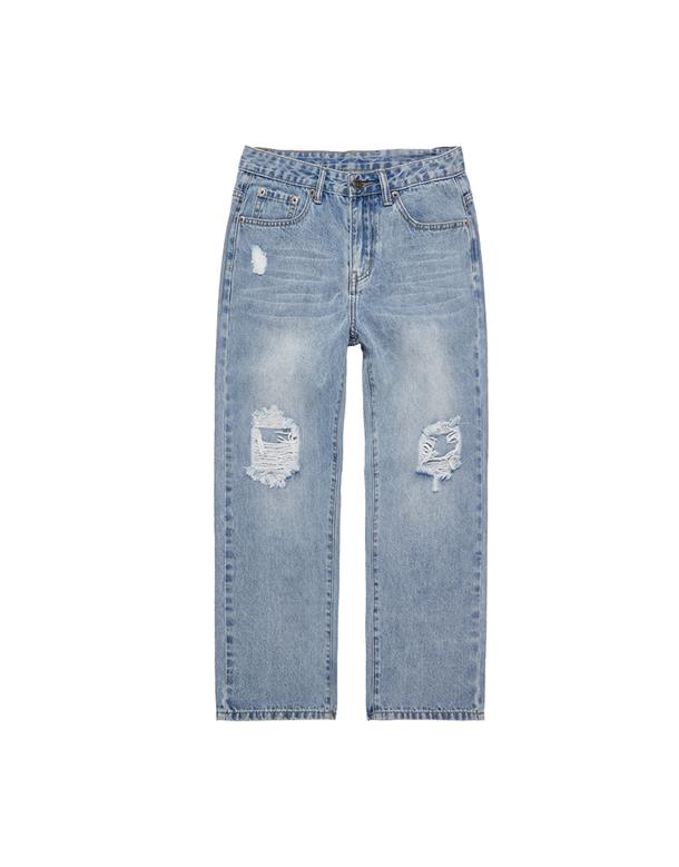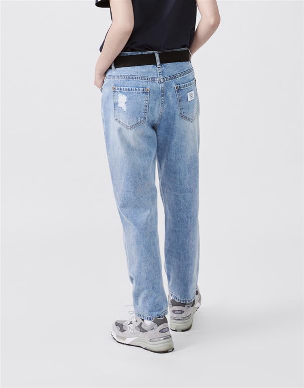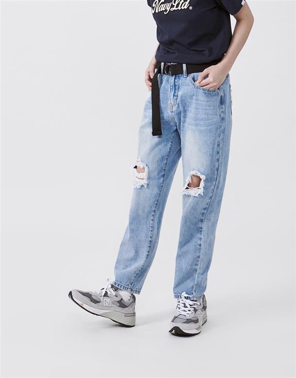 復古淺色率性割破男友牛仔褲,舒柔軟牛仔面料。
