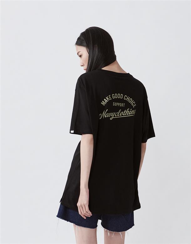 Navy City Girl著用,BOX印刷工藝搭配背後美式文字設計長上衣。