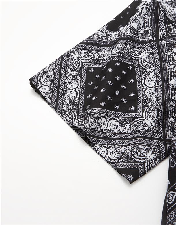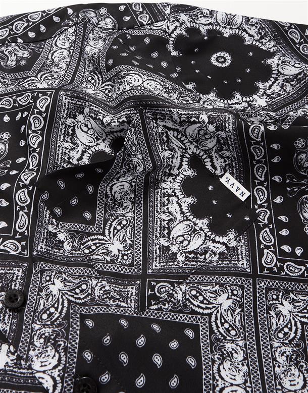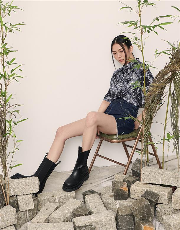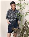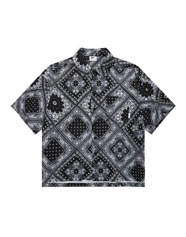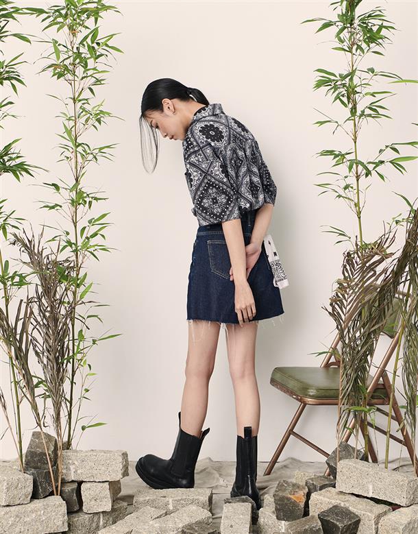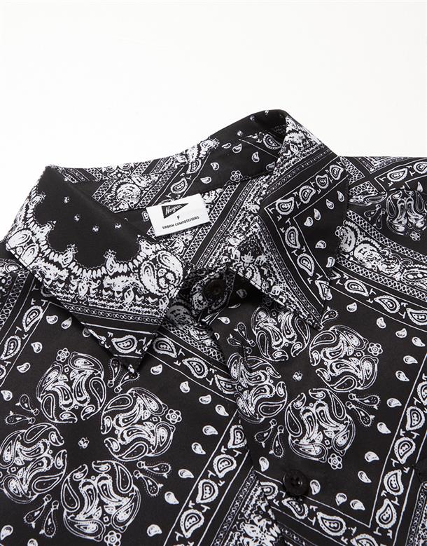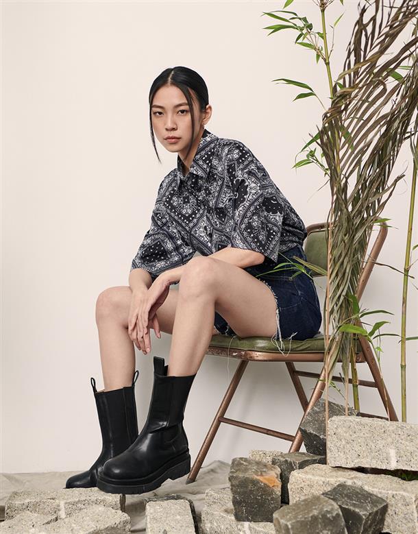 Navy City Girl著用,佩斯利花紋古巴領短襯,個性流行款,肩線前移,前短後長。