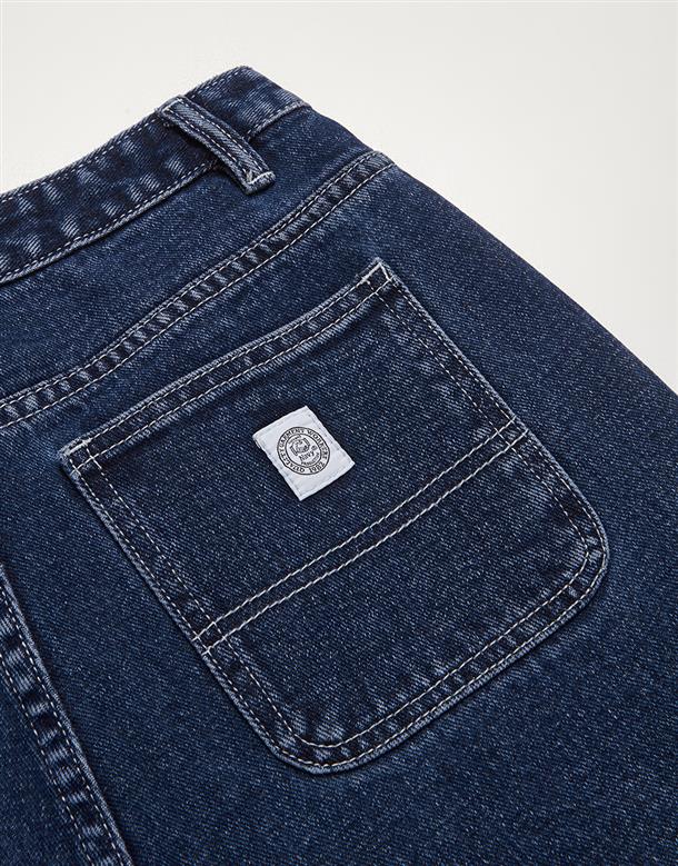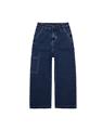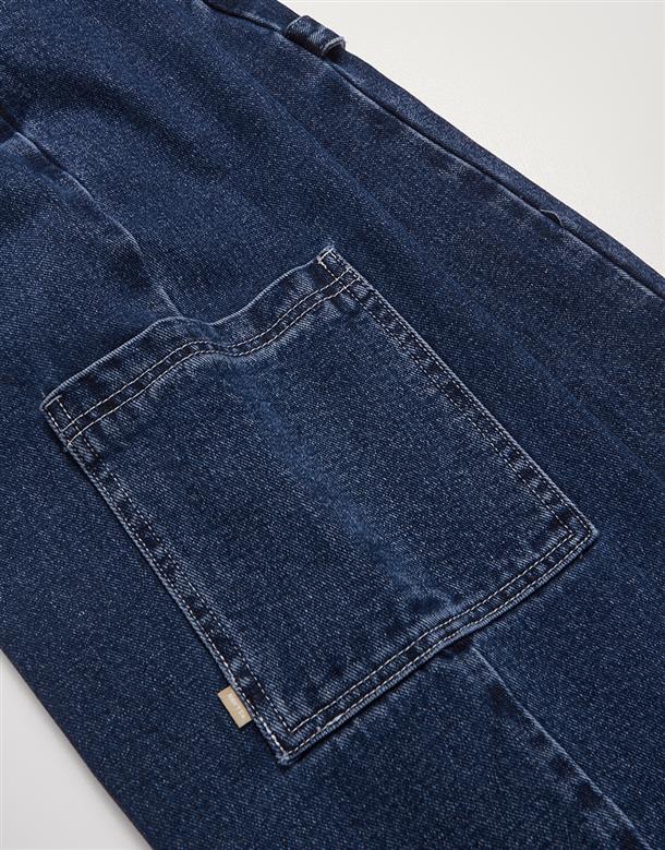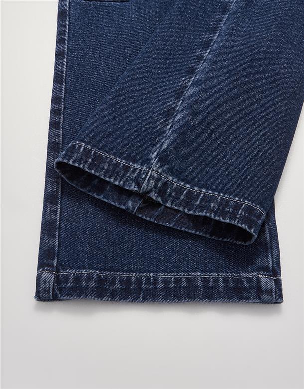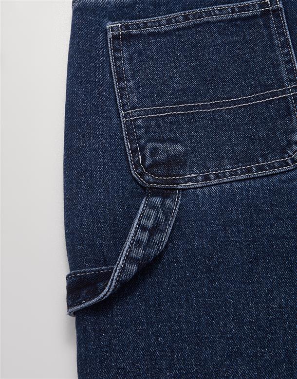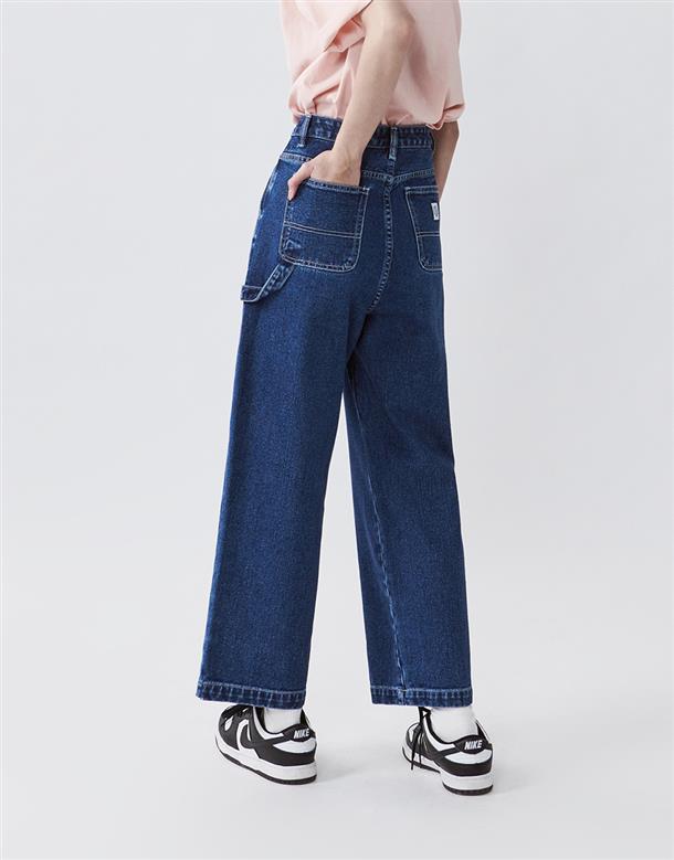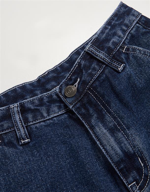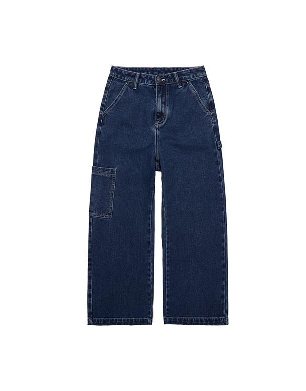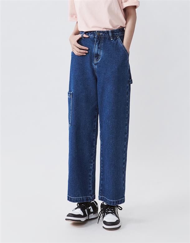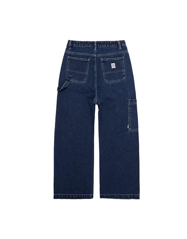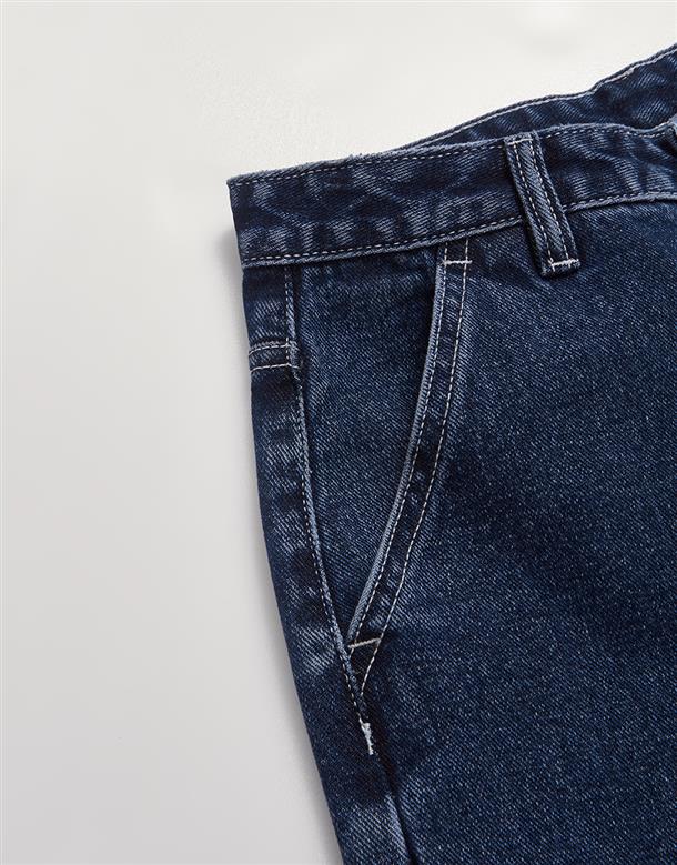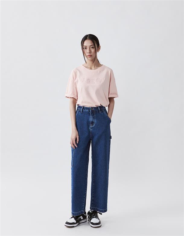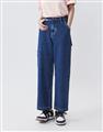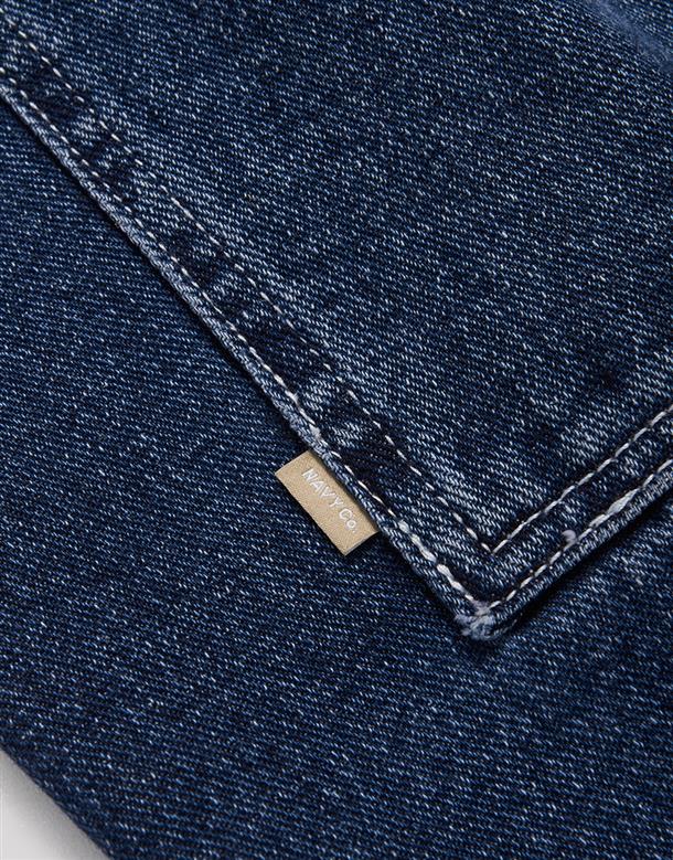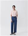 Navy City Girl著用,工裝牛仔直筒裤,撞色車線設計。