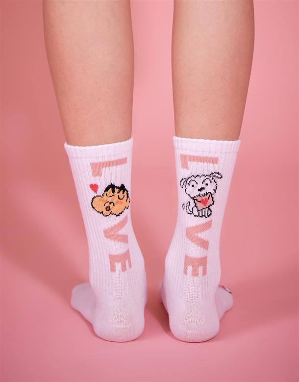 情人節系列,MIT 蠟筆小新LOVE小白提花中長襪。