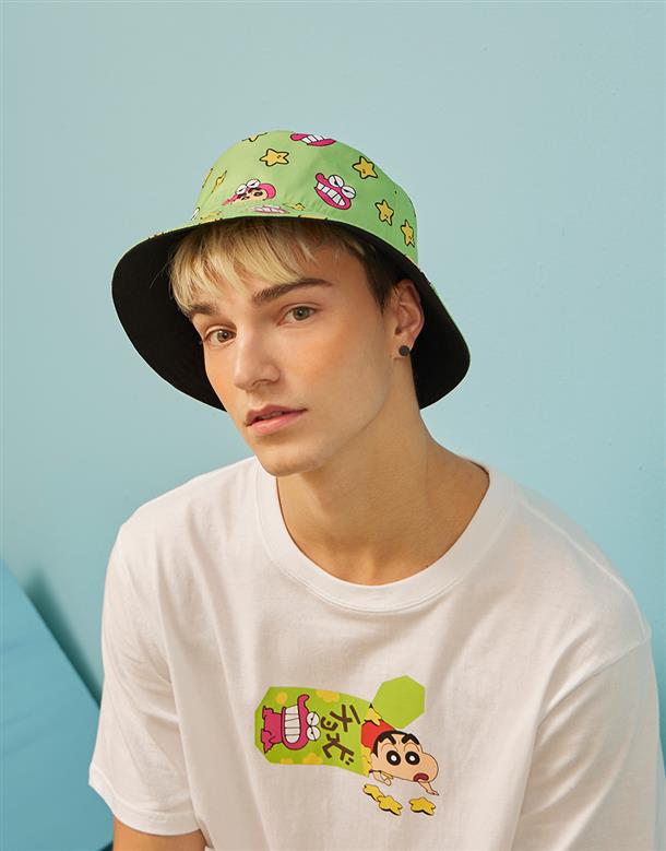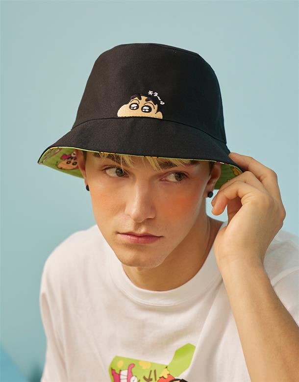 蠟筆小新雙面漁夫帽,質感電繡,滿版印花設計。