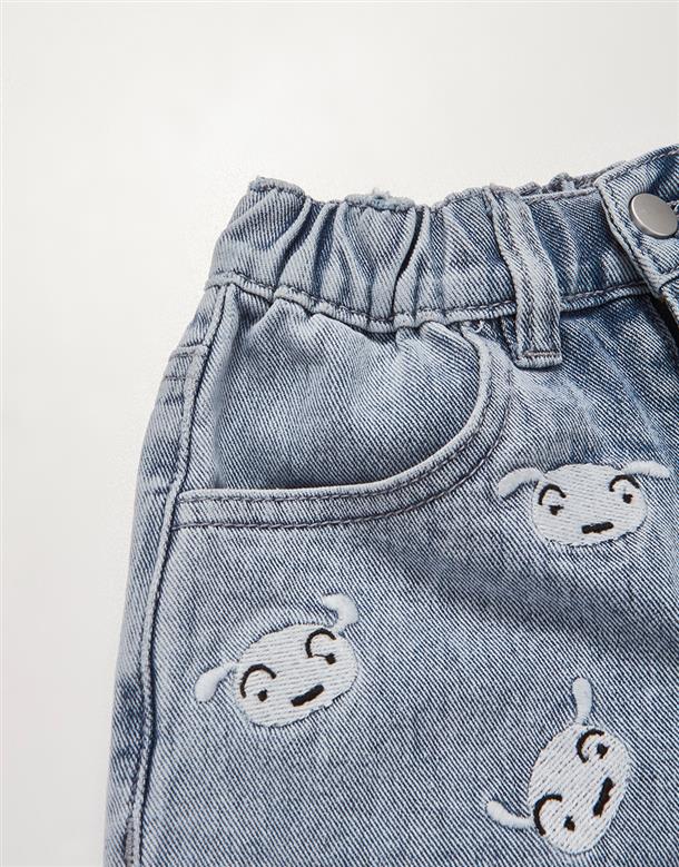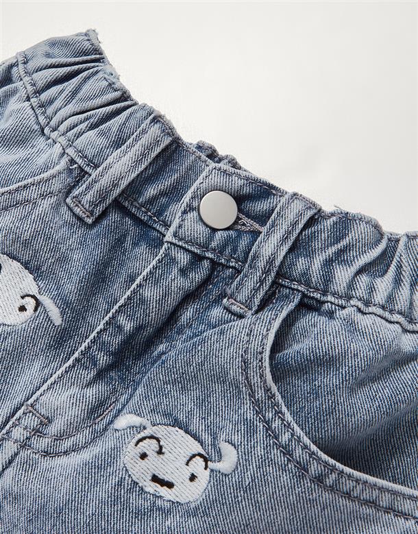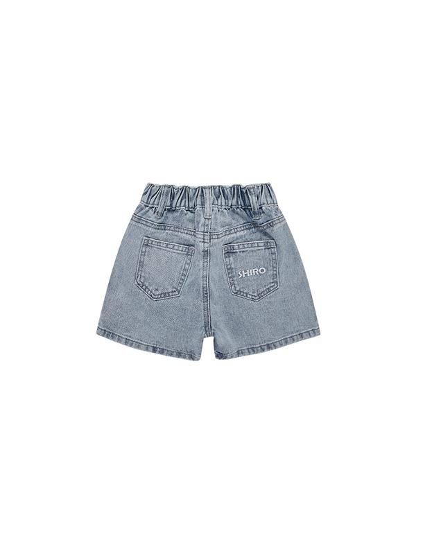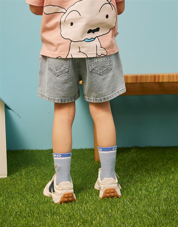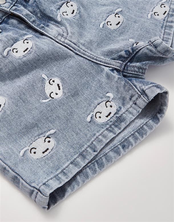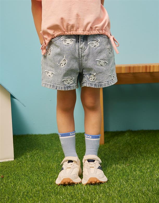 小白牛仔短褲,面料洗水加工,質感繡花設計。