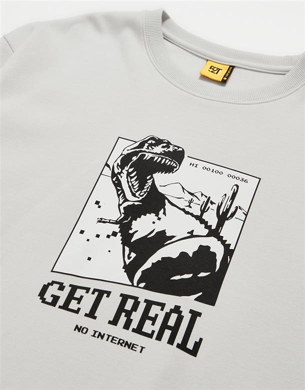 舒適運動面料大學TEE,趣味圖案設計:擬真無網路連線恐龍小遊戲。