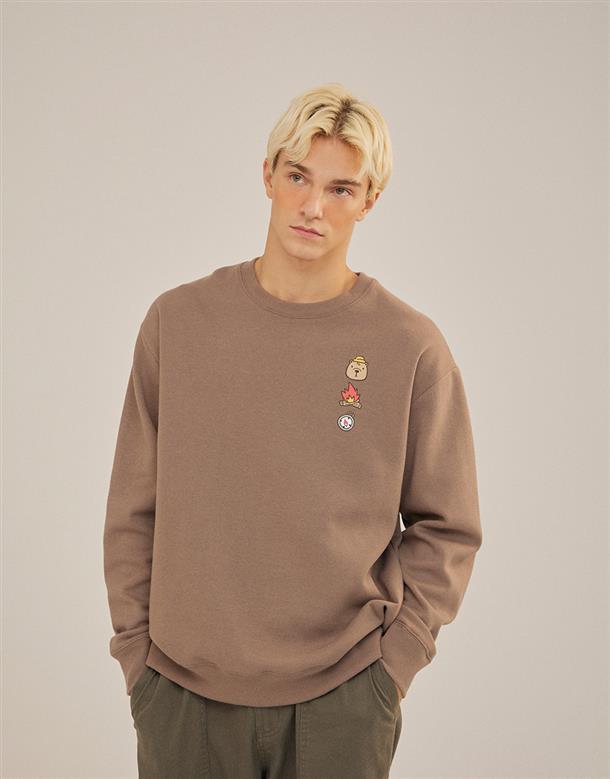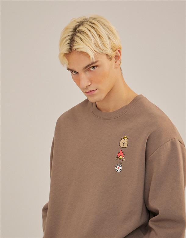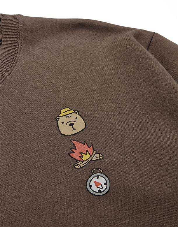舒適運動面料大學TEE,趣味圖案設計:冒險熊露營徽章小物設計。