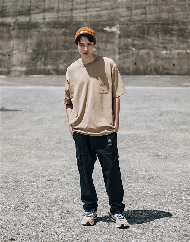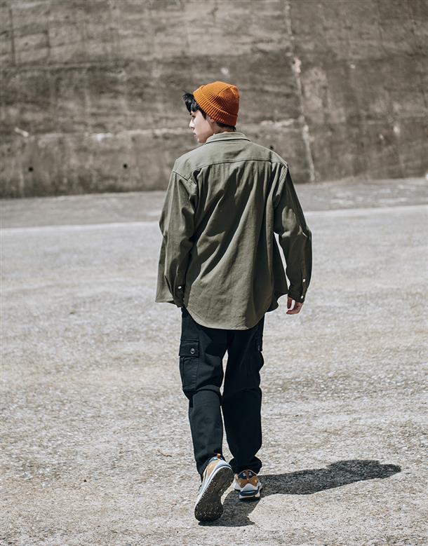 秋冬必備款彈性斜紋面料微寬版軍事風格口袋工作褲。