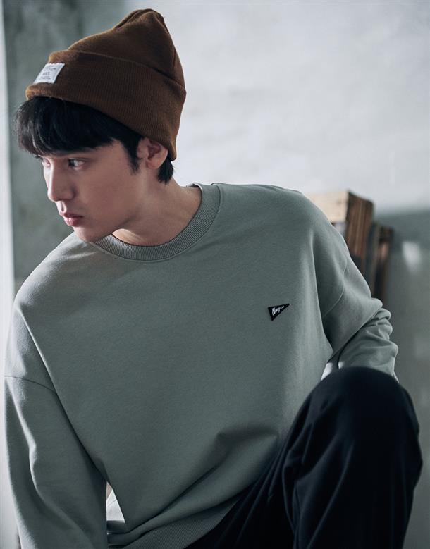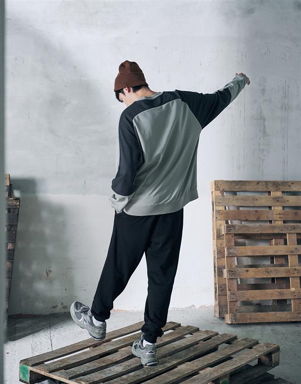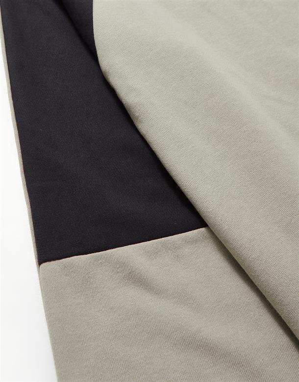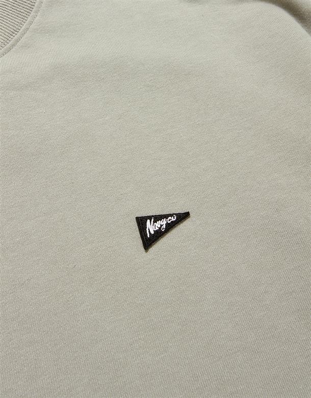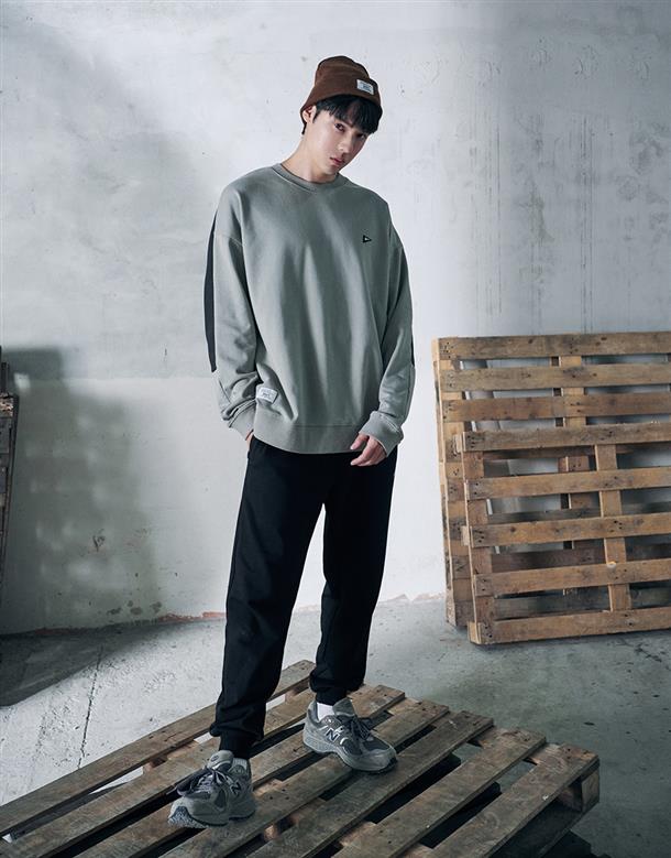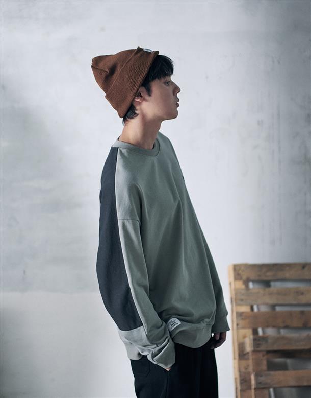 拚色剪接三角標章款無刷毛衛衣布料材質大學TEE。