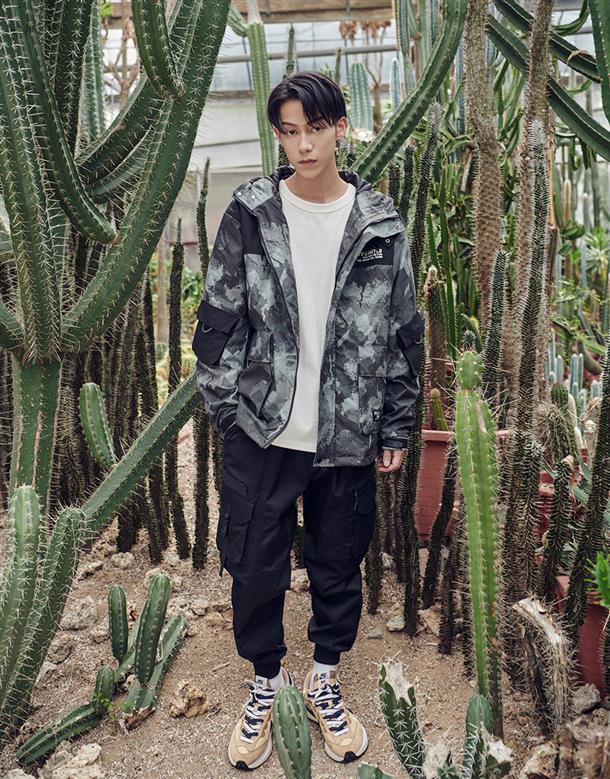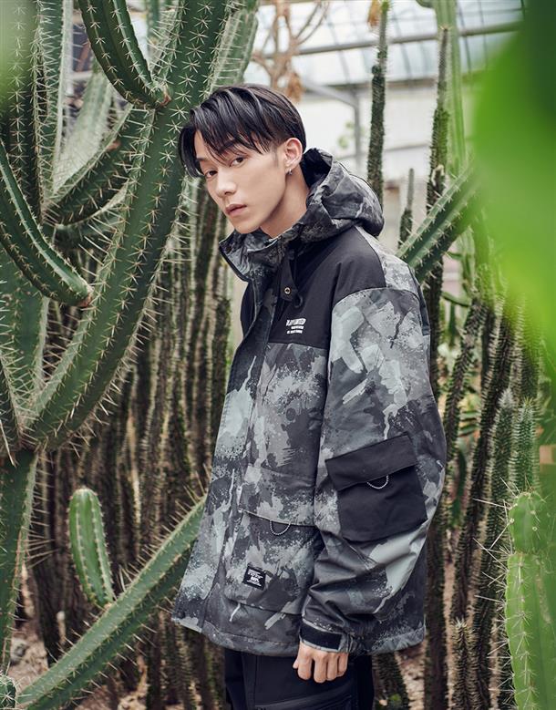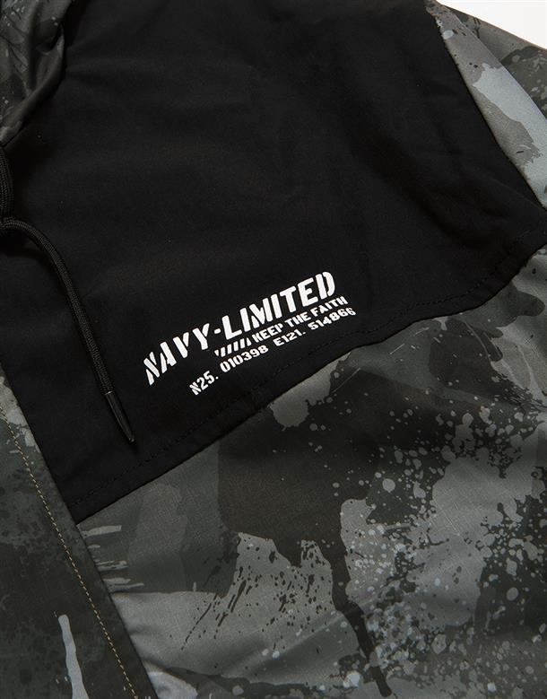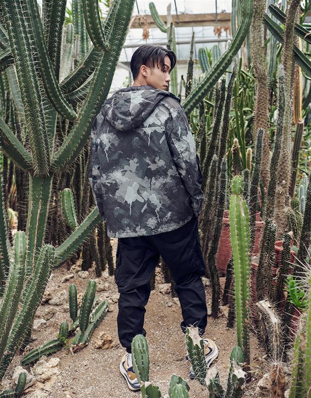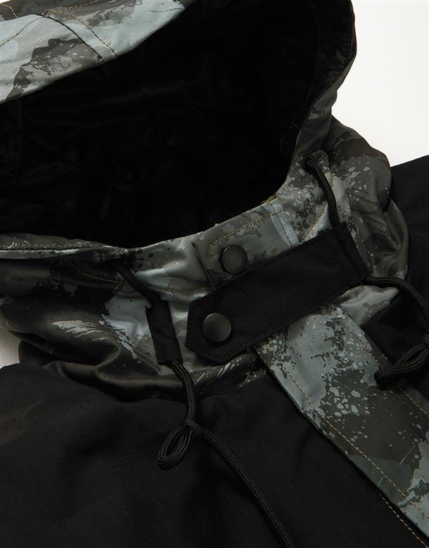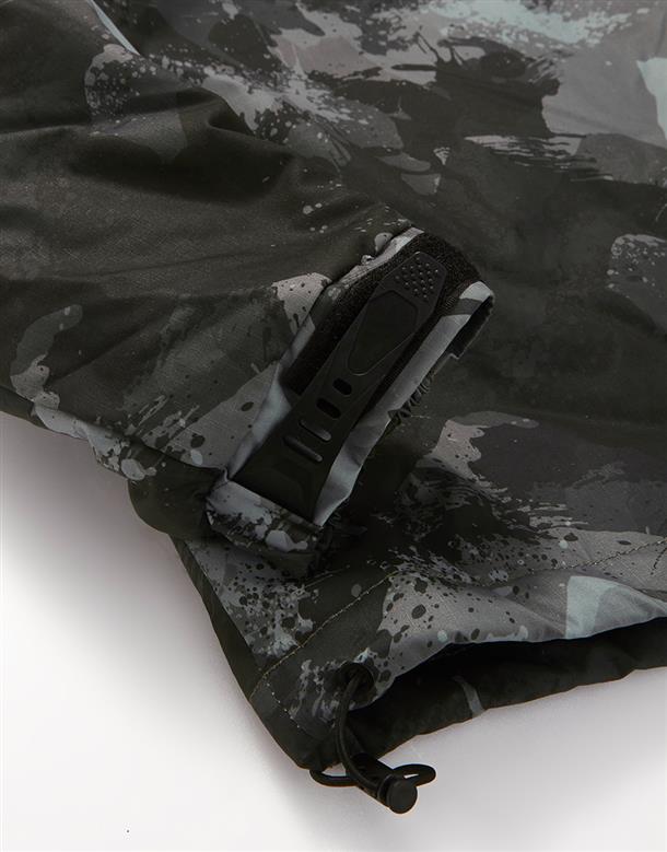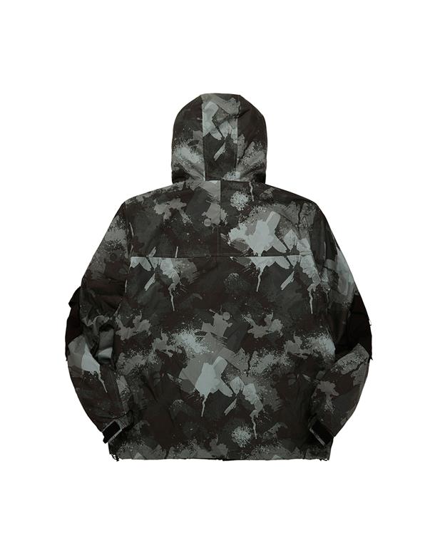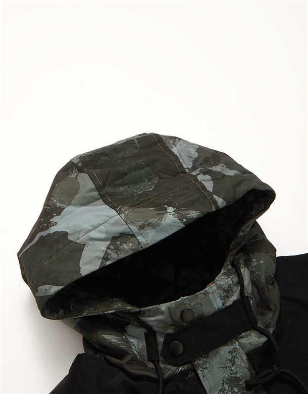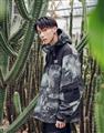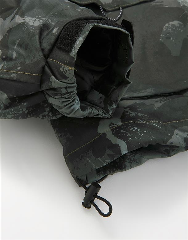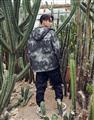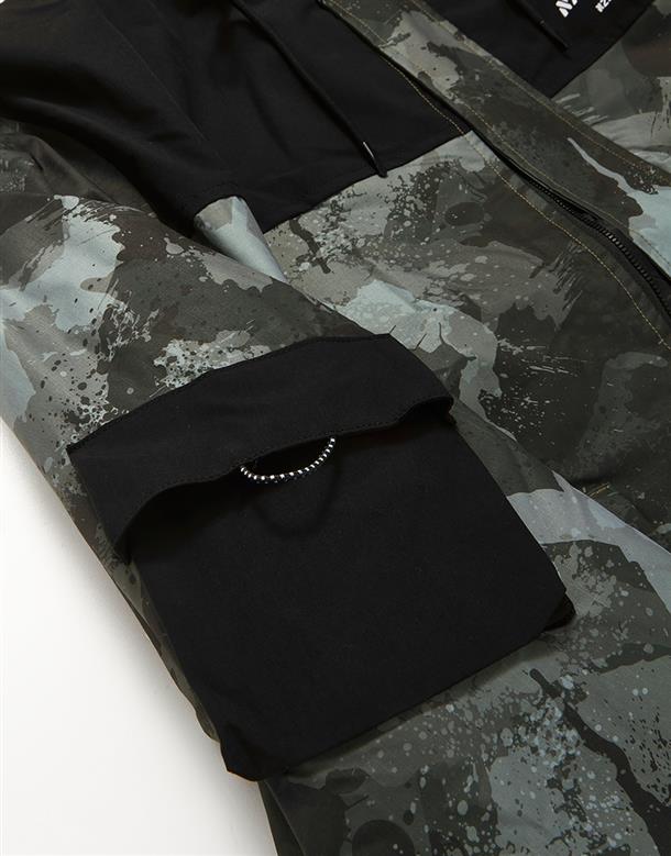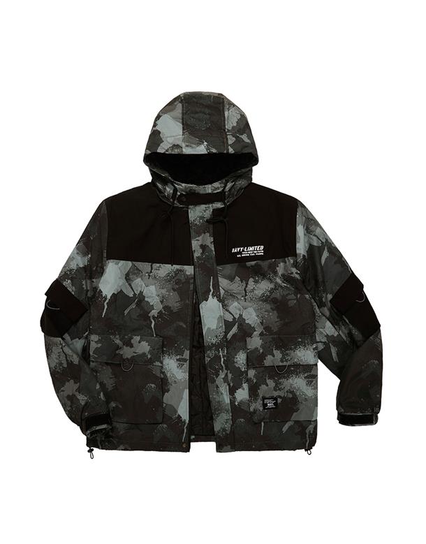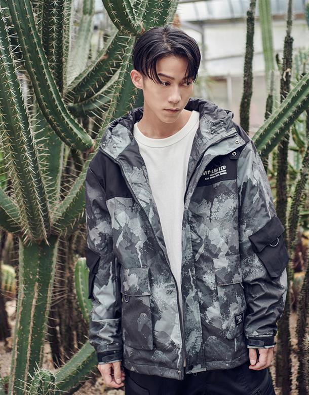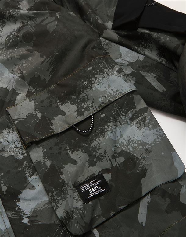 綠迷彩保暖薄鋪棉款防風防潑水造型衝鋒外套。