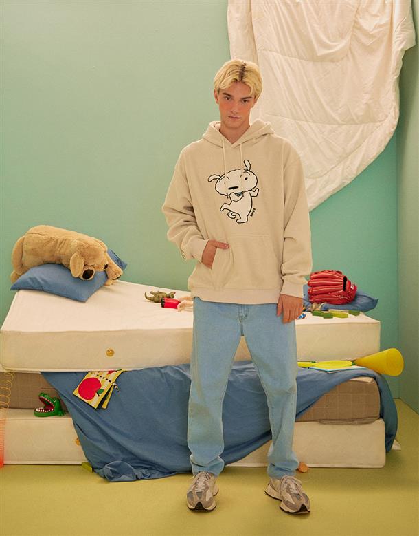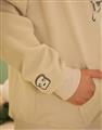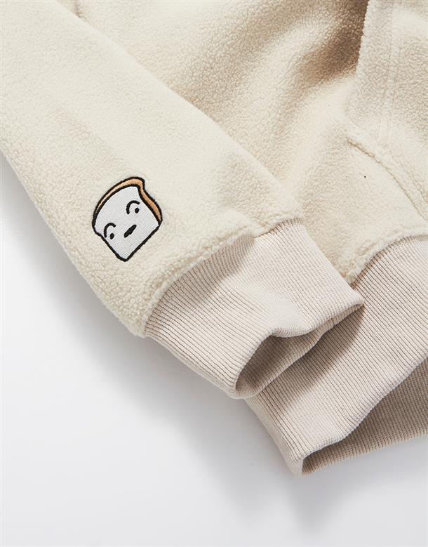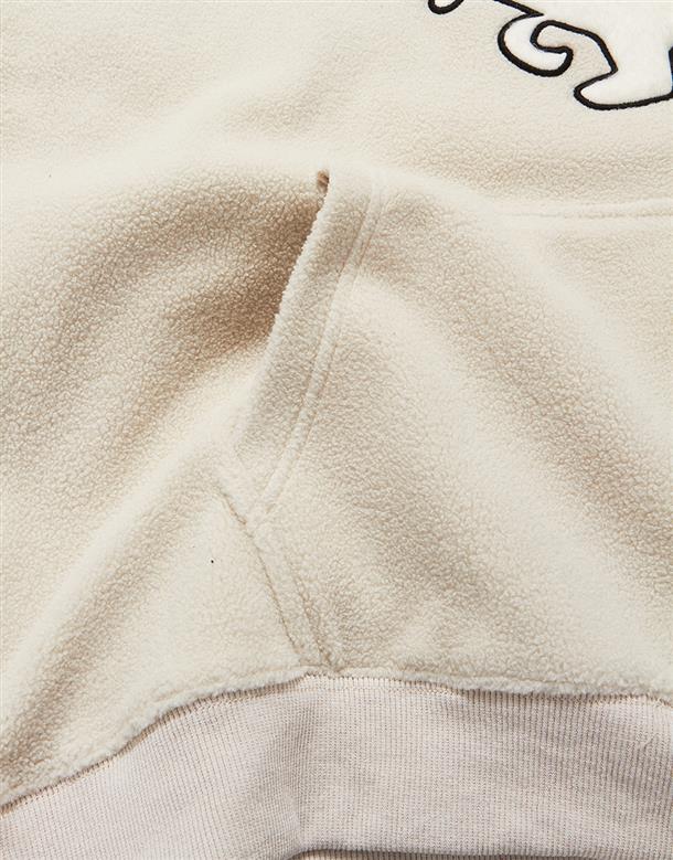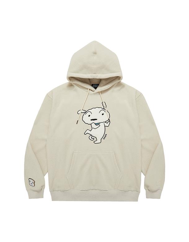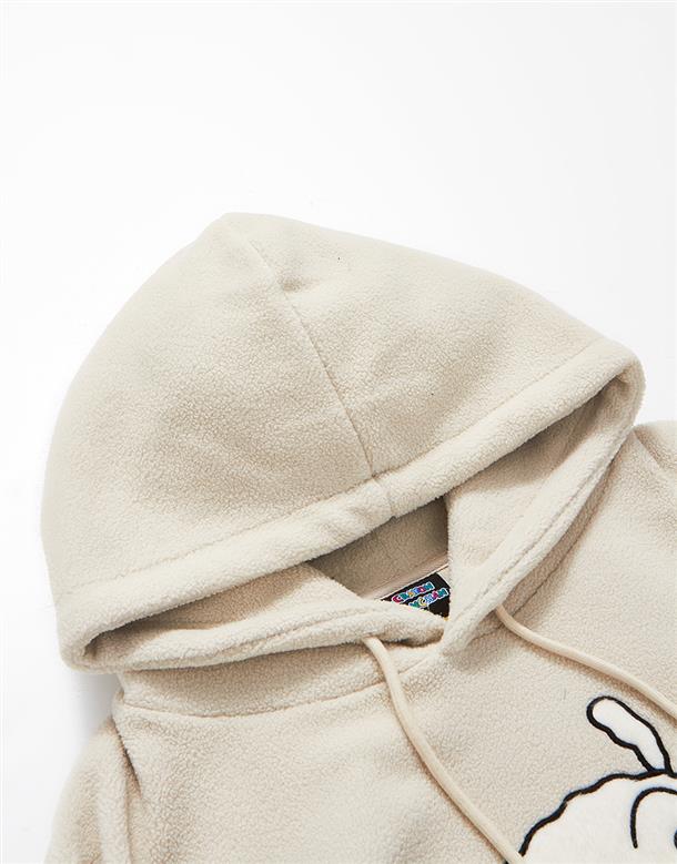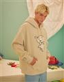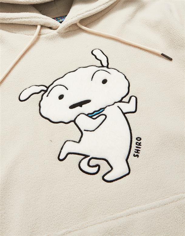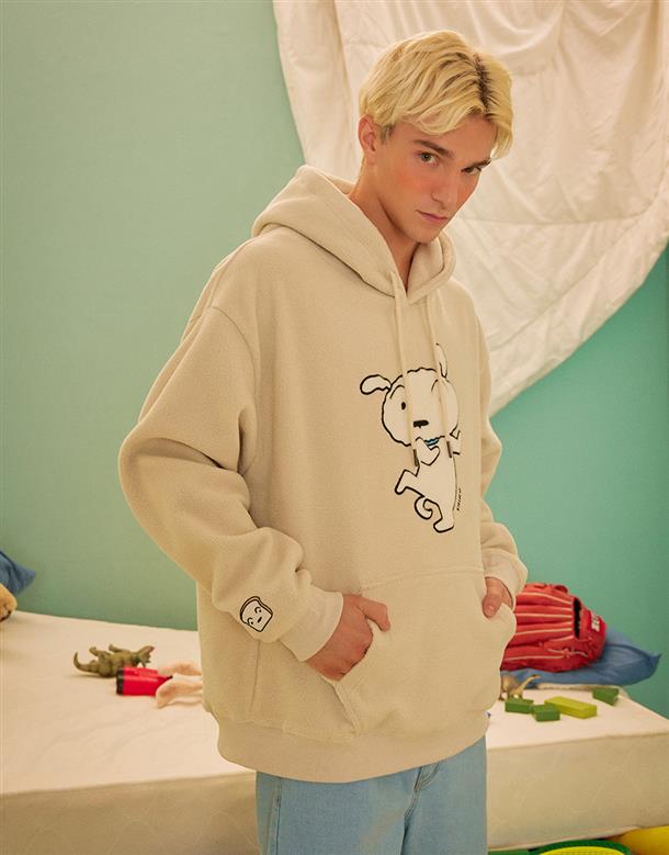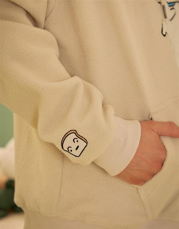 俏皮小白貼布設計,寬鬆落肩舒棉絨帽TEE。