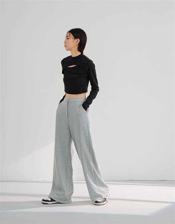 質感舒適衛衣面料,前中開拉鍊,後腰做鬆緊帶,正面打褶增添立體修飾度,版型寬鬆隨興。