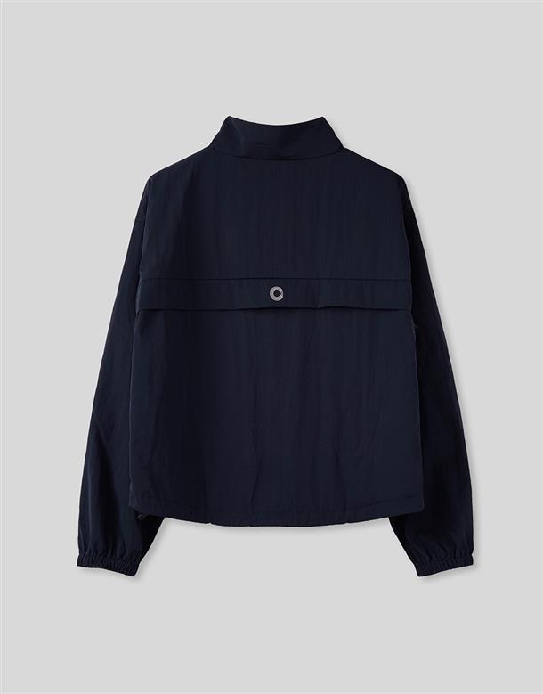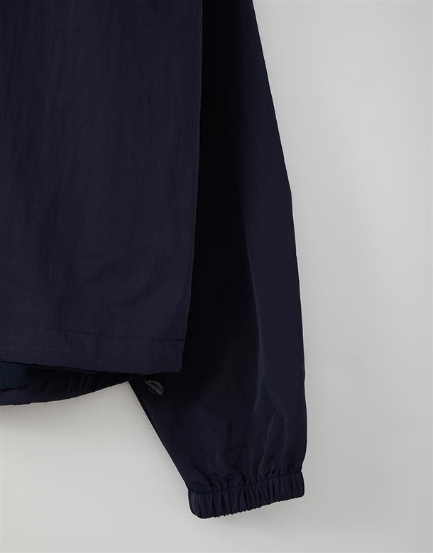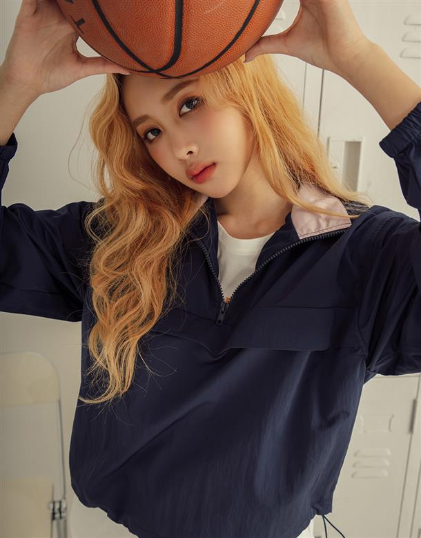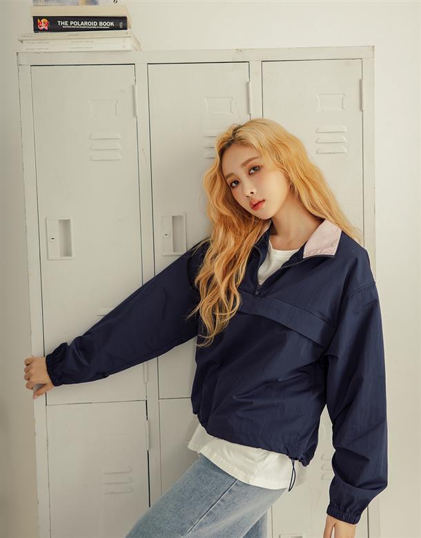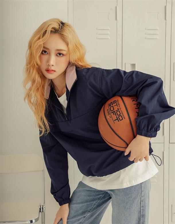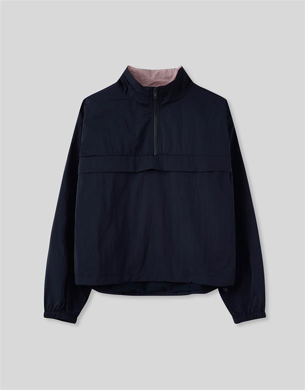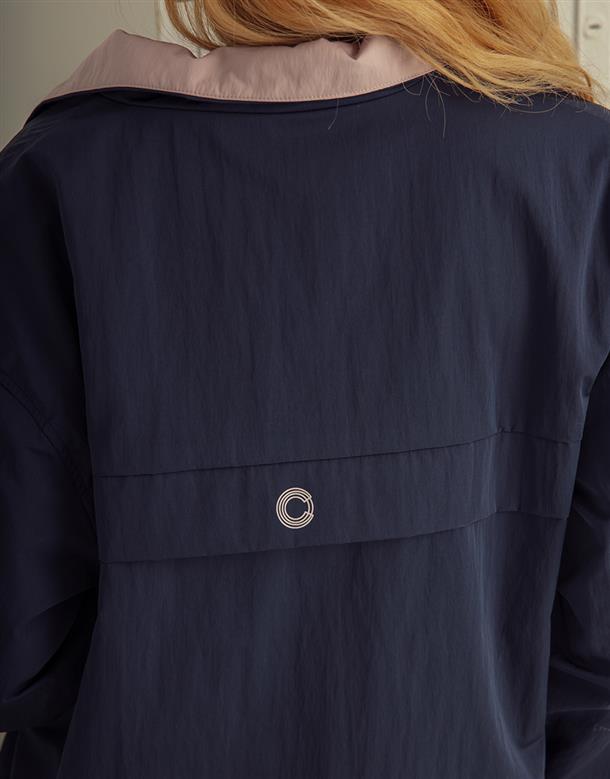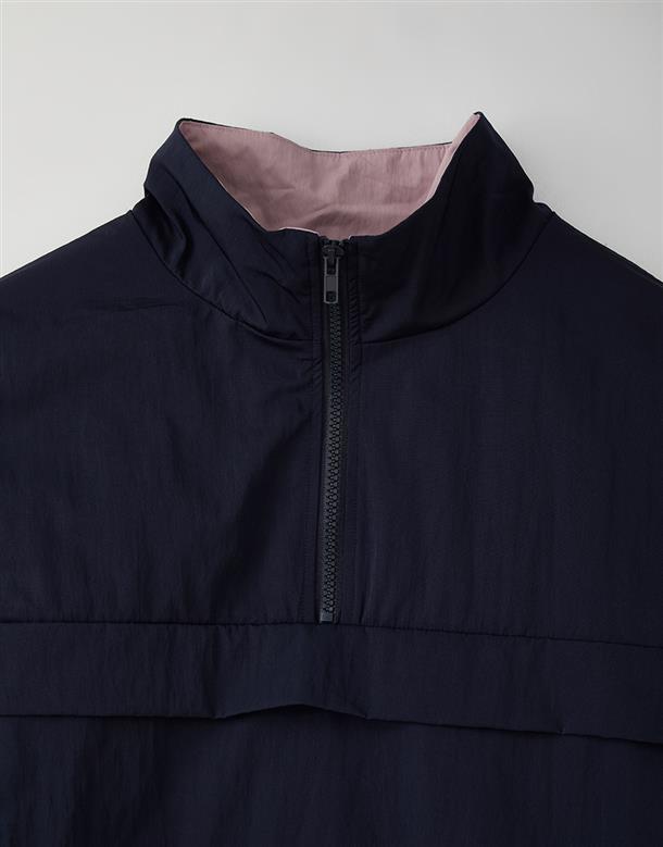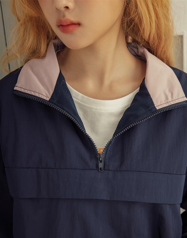 獨特拼接色彩的機能高領,半門襟含透氣裡布和基礎防風防寒布料特性。