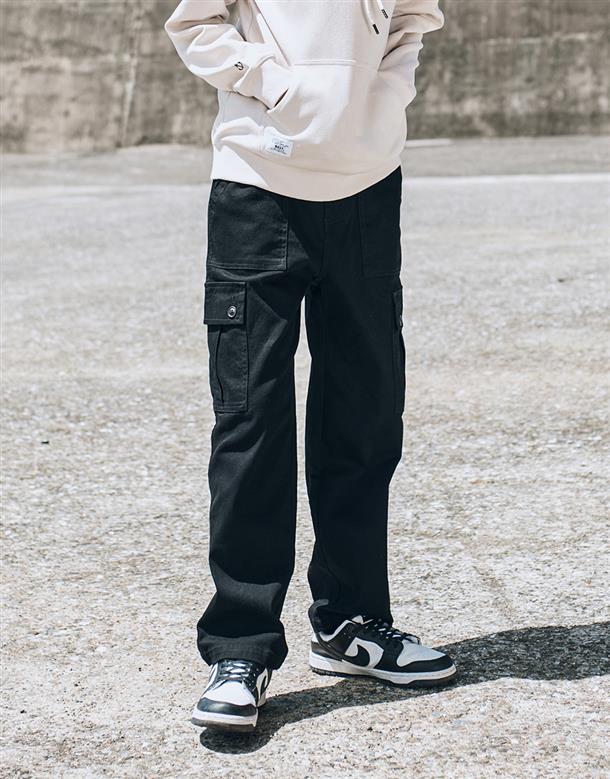 秋冬必備款,彈性斜紋面料微寬版軍事風格口袋工作褲。