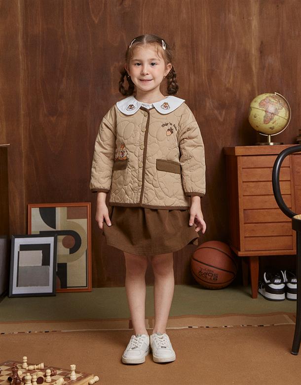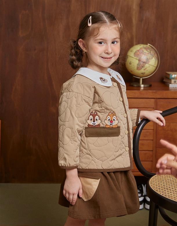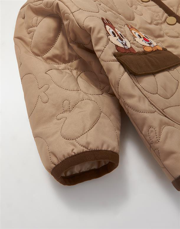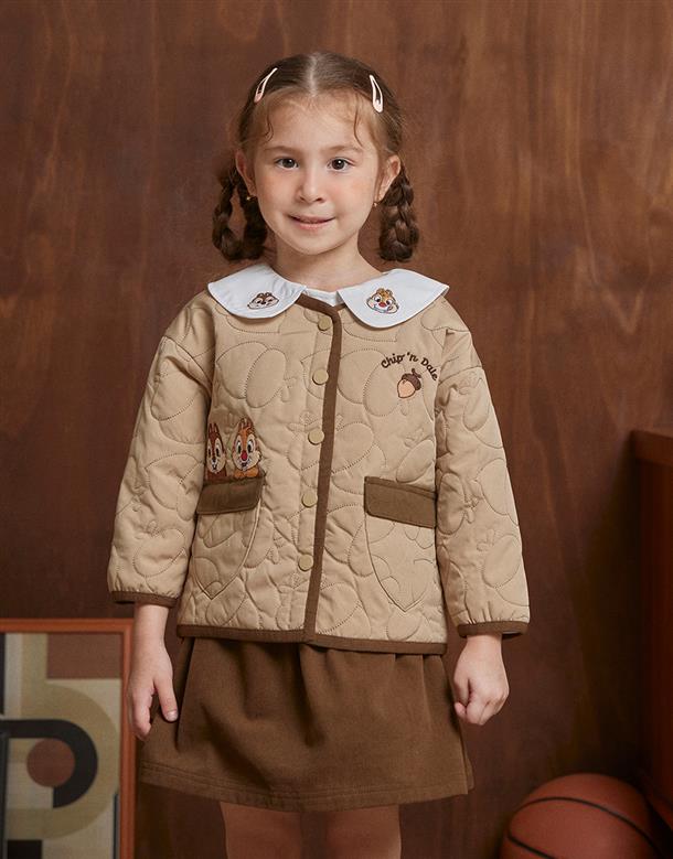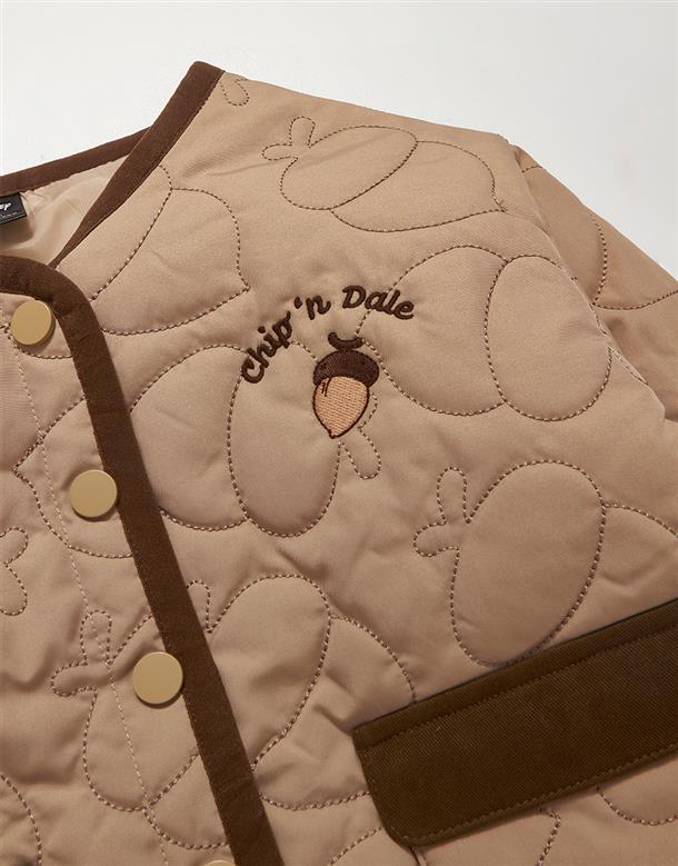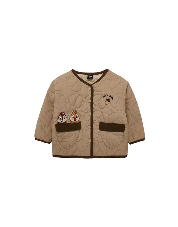 奇奇蒂蒂無領鋪棉外套,滿版衍縫工藝,松果造型貼袋,鬆軟溫暖穿搭款。