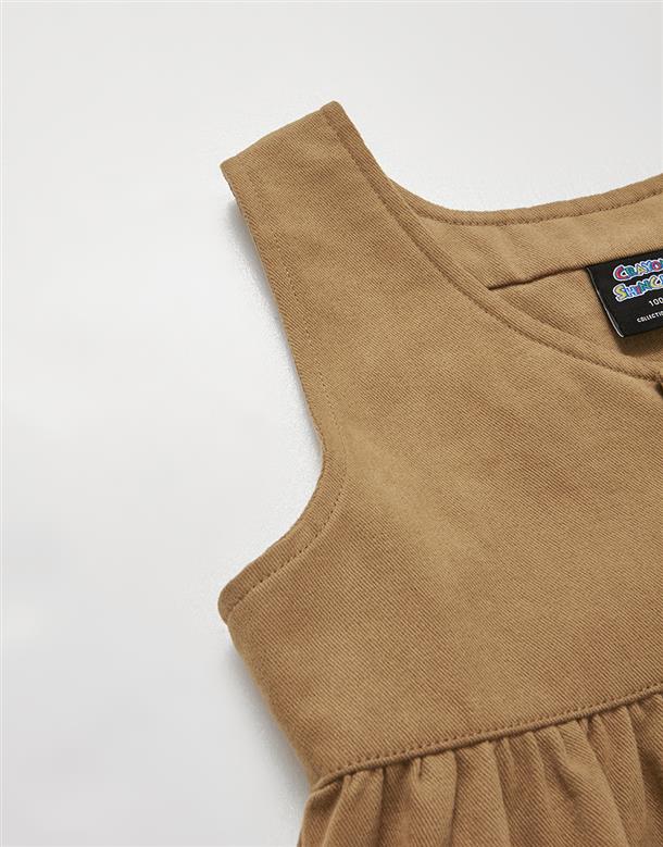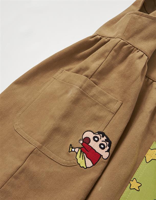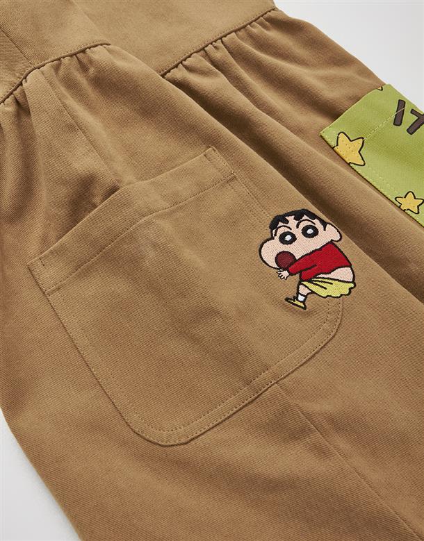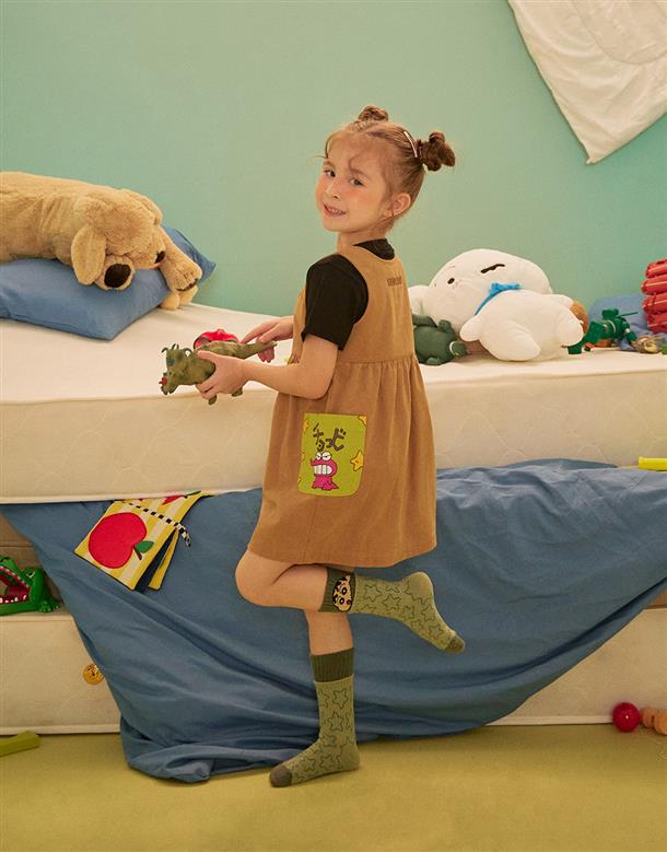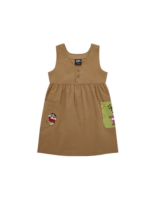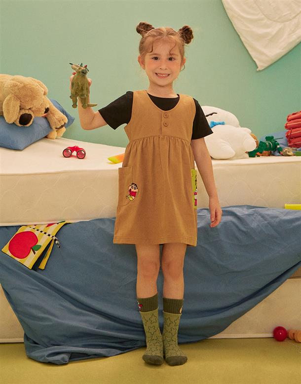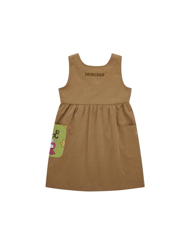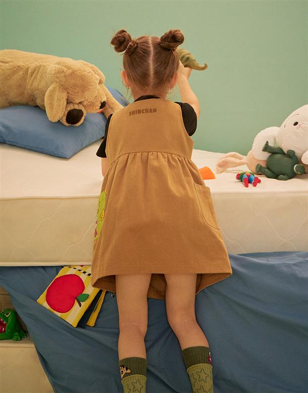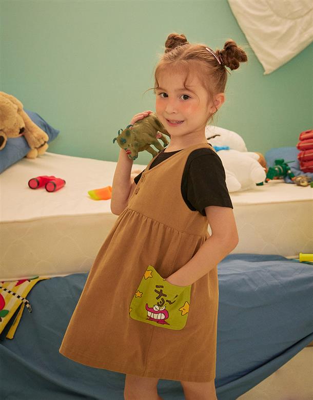 小新背心洋裝,大口袋印刷,精緻電繡設計。