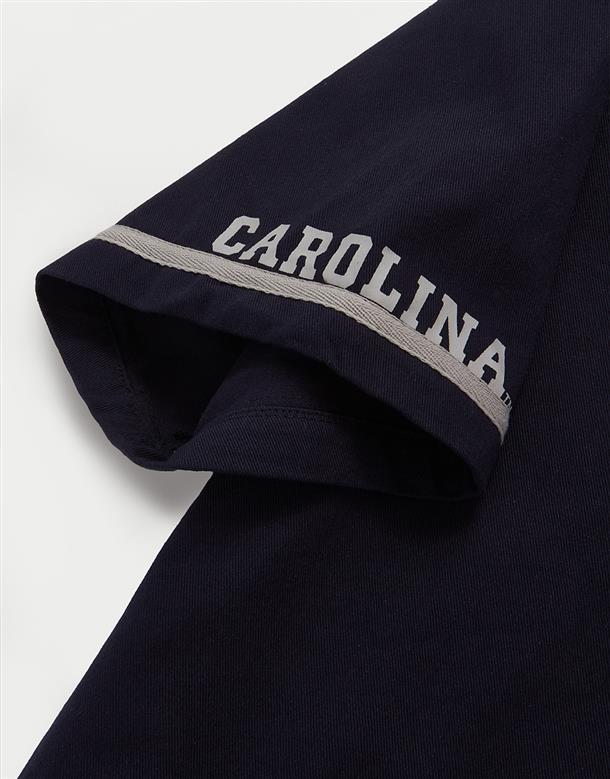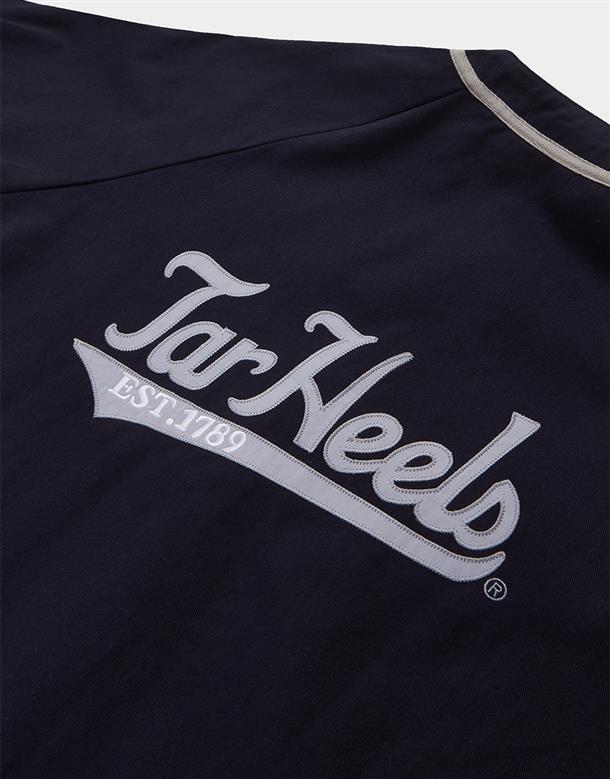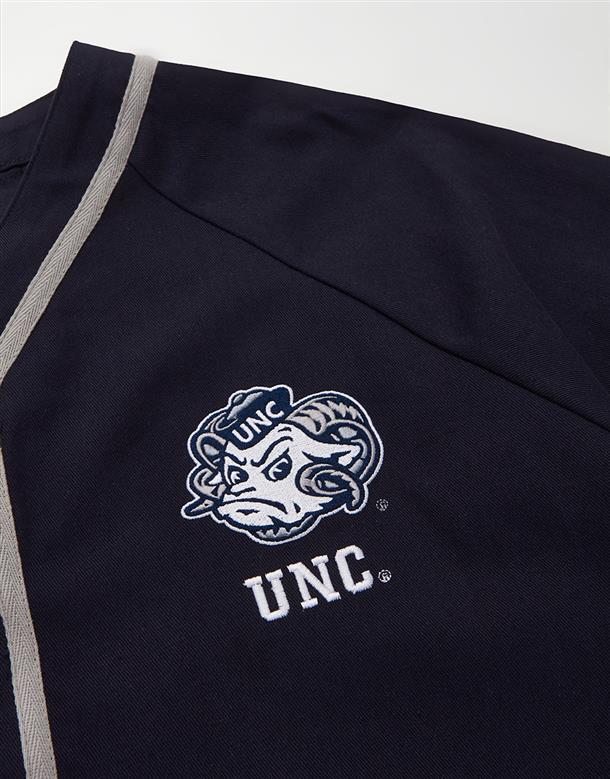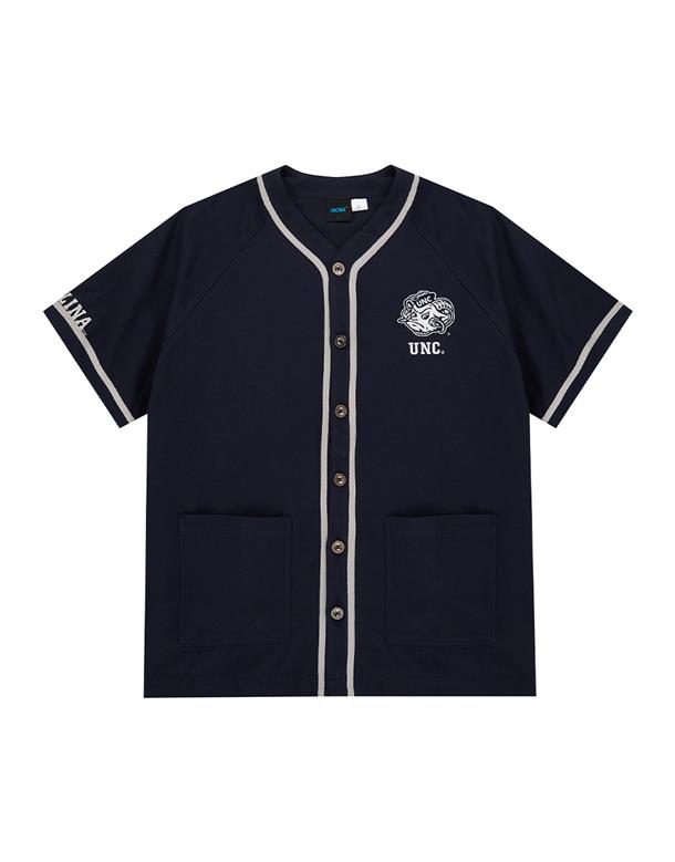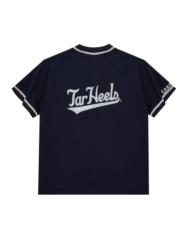 NCAA北卡羅來納大學夏季層次穿搭必備款,胸口學院吉祥物,短袖造型棒球衫。