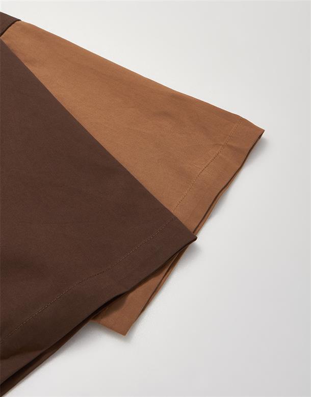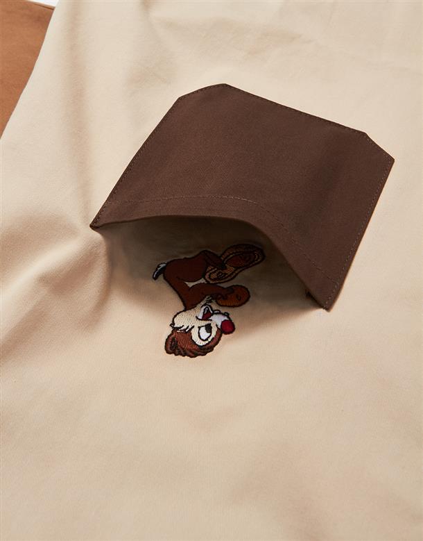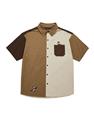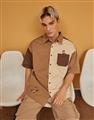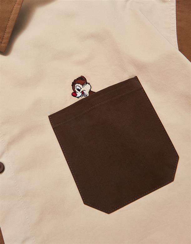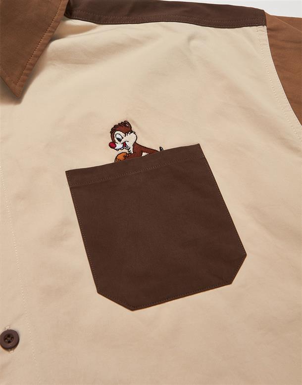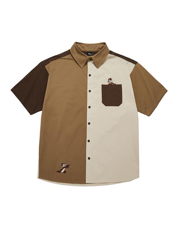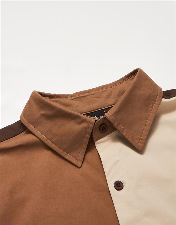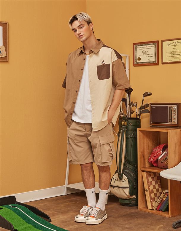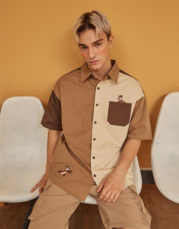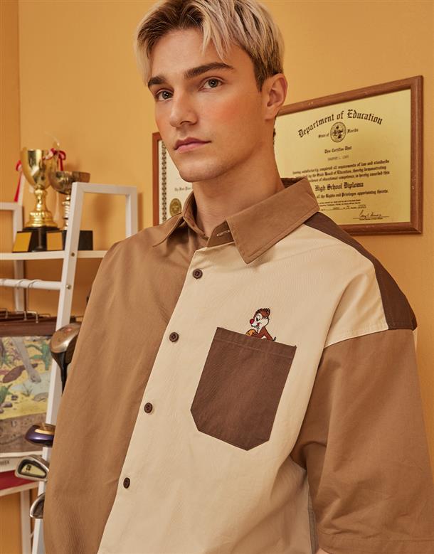 造型口袋,奇奇蒂蒂撞色寬鬆落肩襯衫。