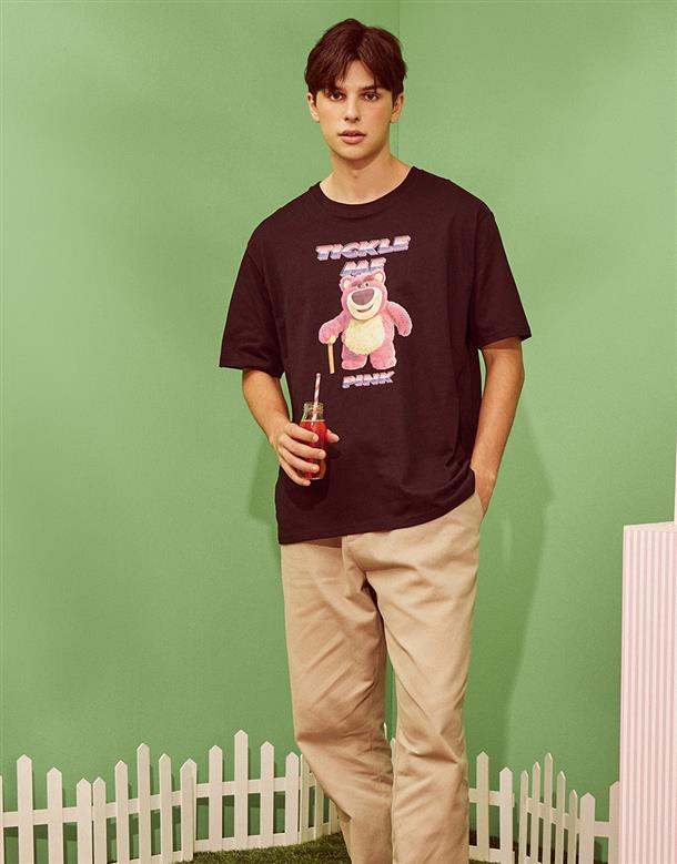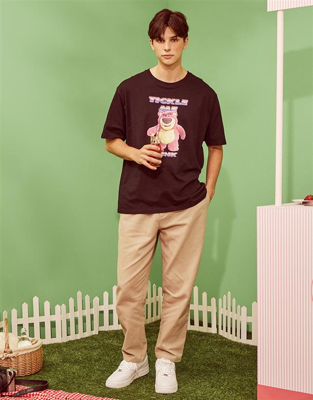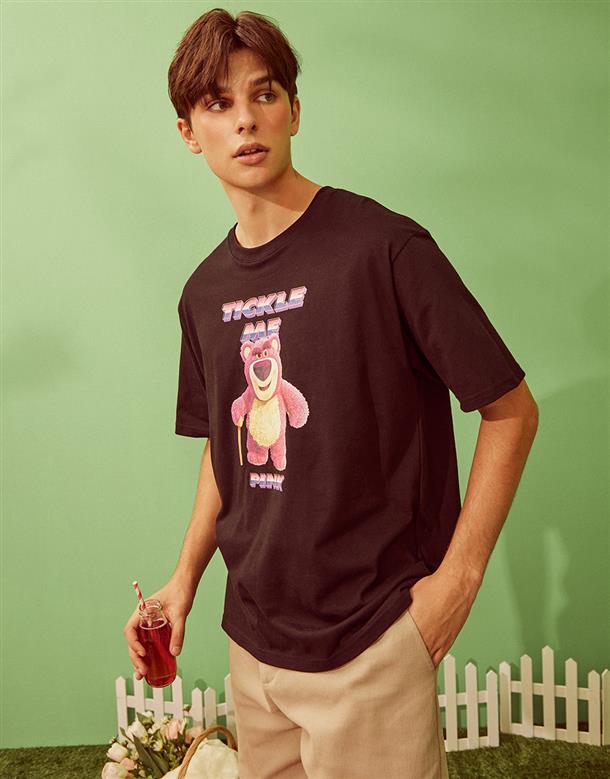熊抱哥質感相片印設計,舒適美國棉質落肩短袖T恤。