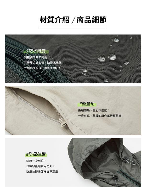 機能防風防撥水材質,口袋可收納連帽風衣外套,
