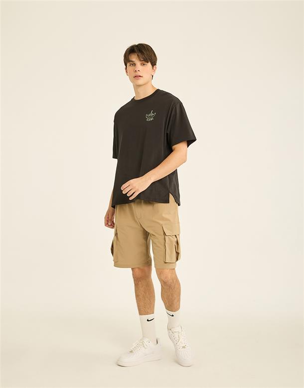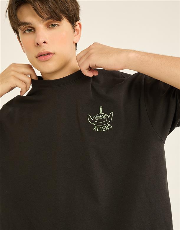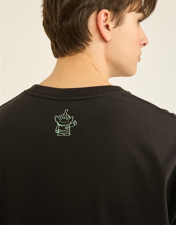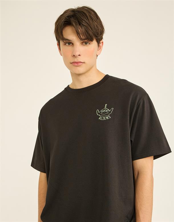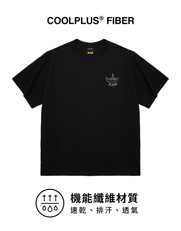 訂製機能透氣面料,內層採用吸濕排汗原紗織製而成,落肩寬鬆版三眼怪設計短TEE。