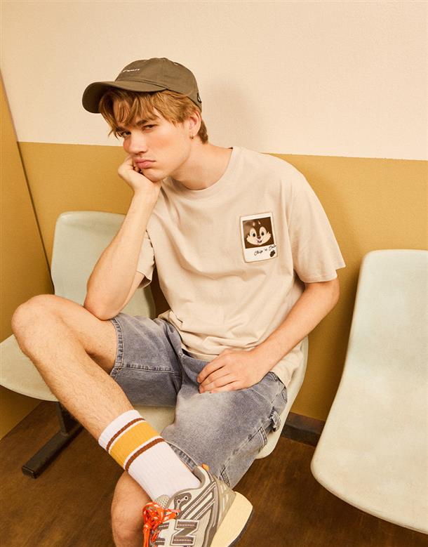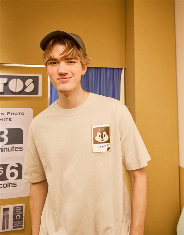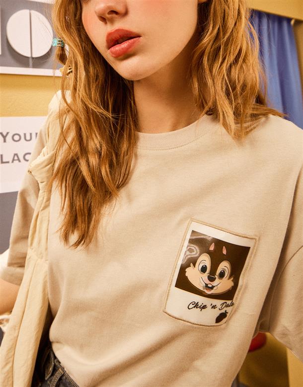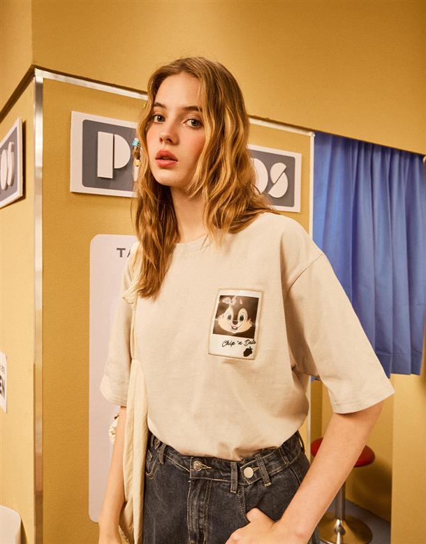 迪士尼100週年系列,趣味迪士尼人物100種微笑奇奇蒂蒂漸變設計,舒適棉質落肩短袖TEE恤。