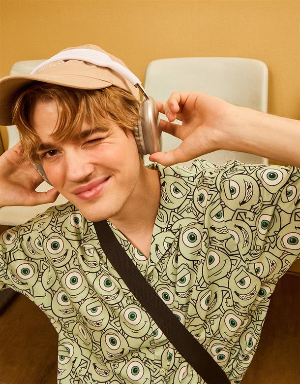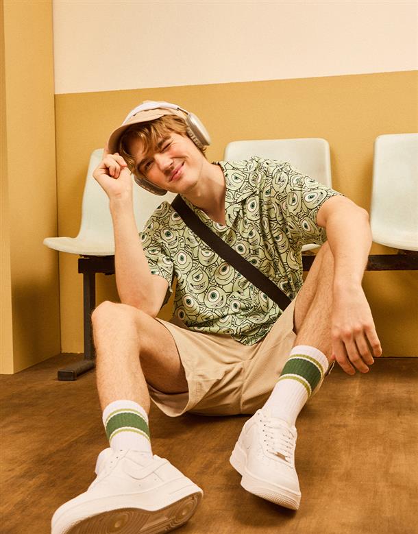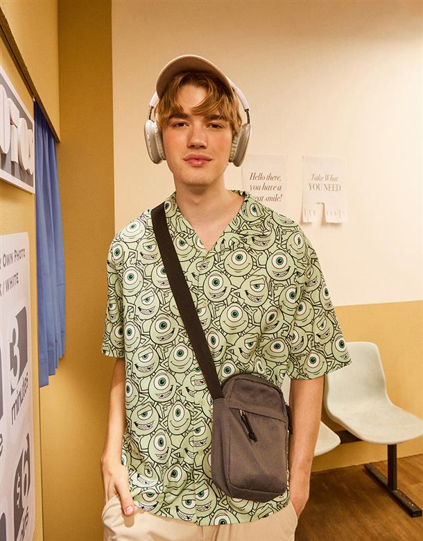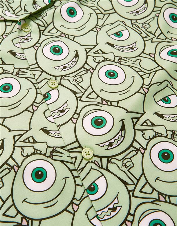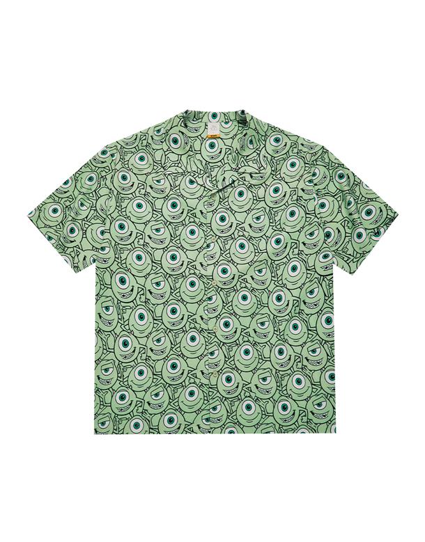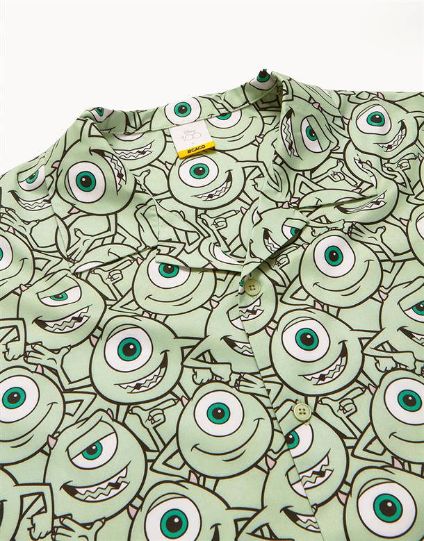 趣味大眼仔滿版圖案設計,舒適穿搭古巴領開襟衫。