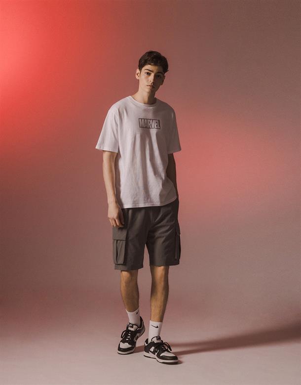 漫威系列,基本LOGO燙銀設計,舒適質感搭配短TEE。