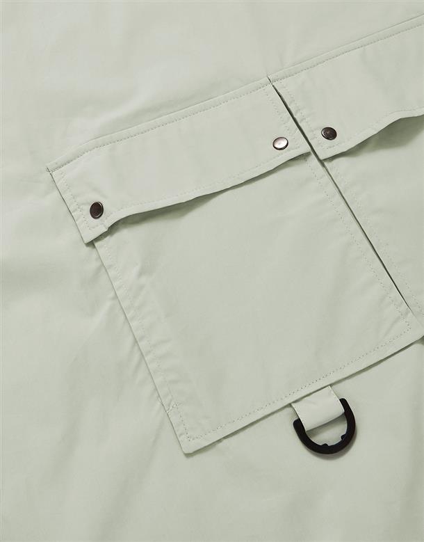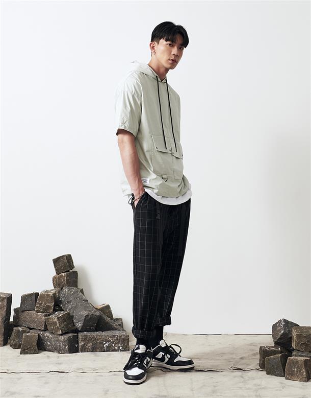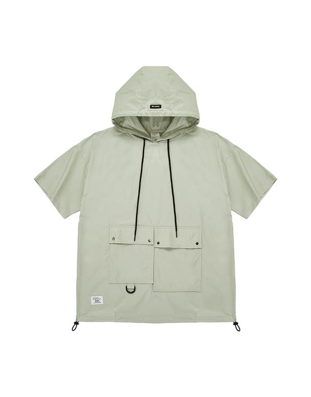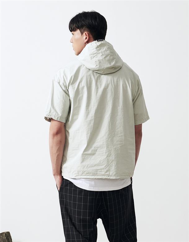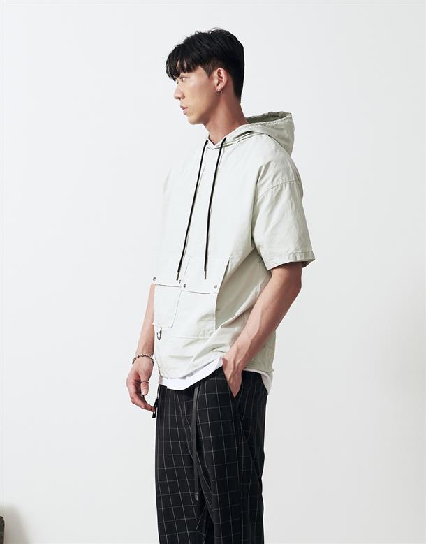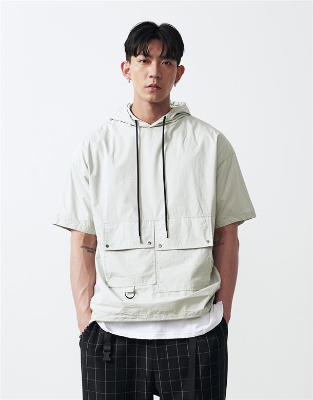 夏日輕薄面料款微落肩寬鬆版型多口袋短袖連帽TEE。