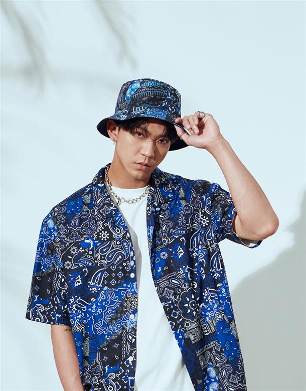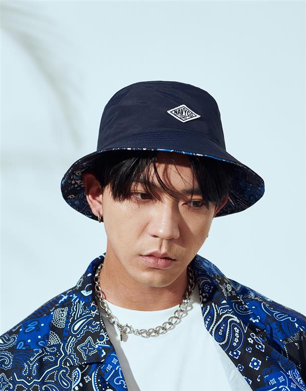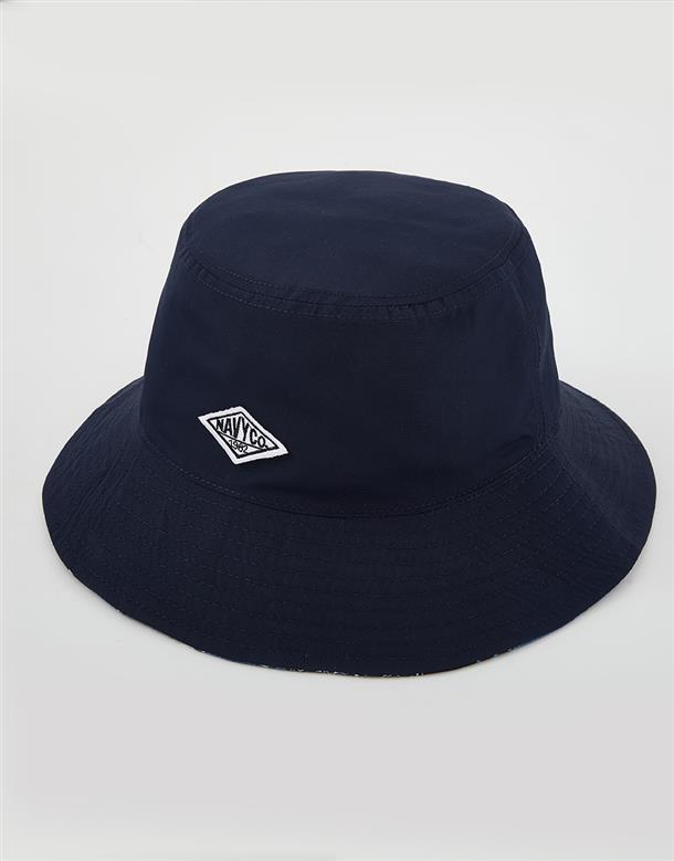 雙面戴 NAVY 夏季高質感滿版印花短版漁夫帽。