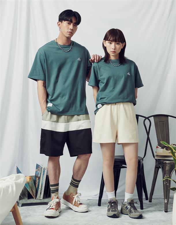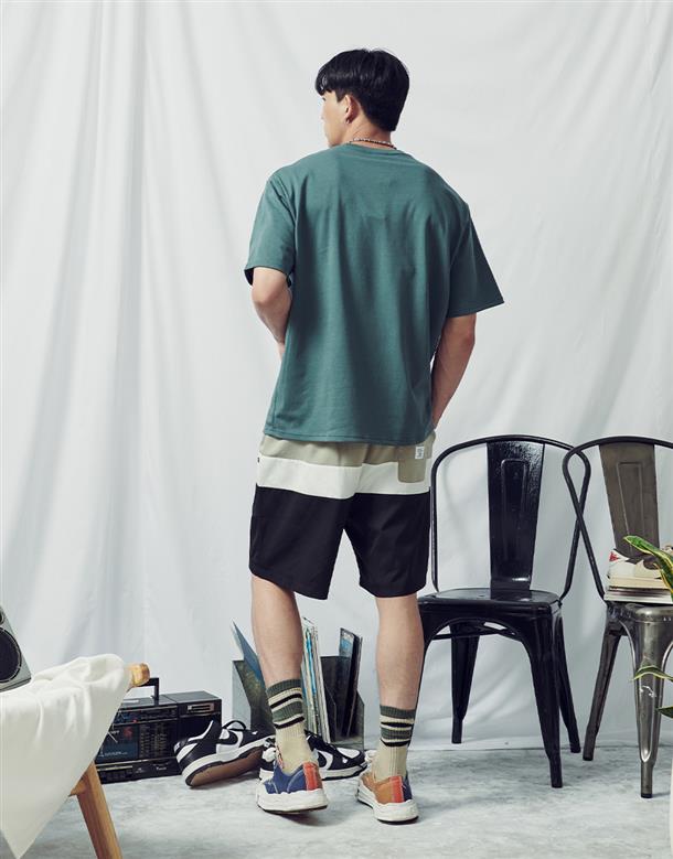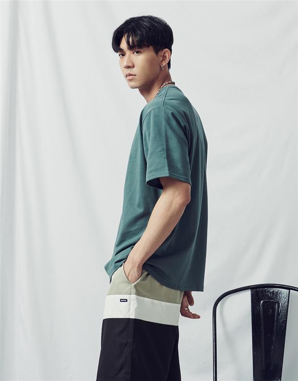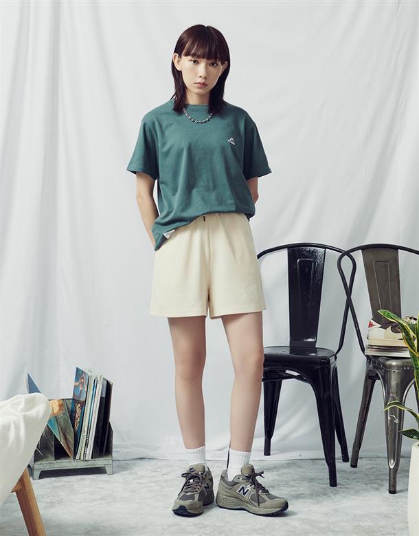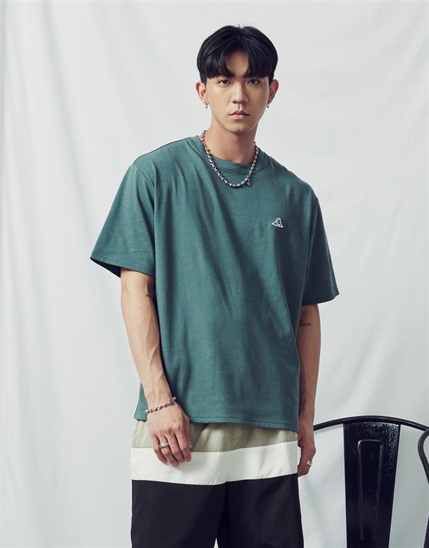 夏日NAVY吸濕排汗材質,胸口鯊魚織標款基礎穿搭短TEE。